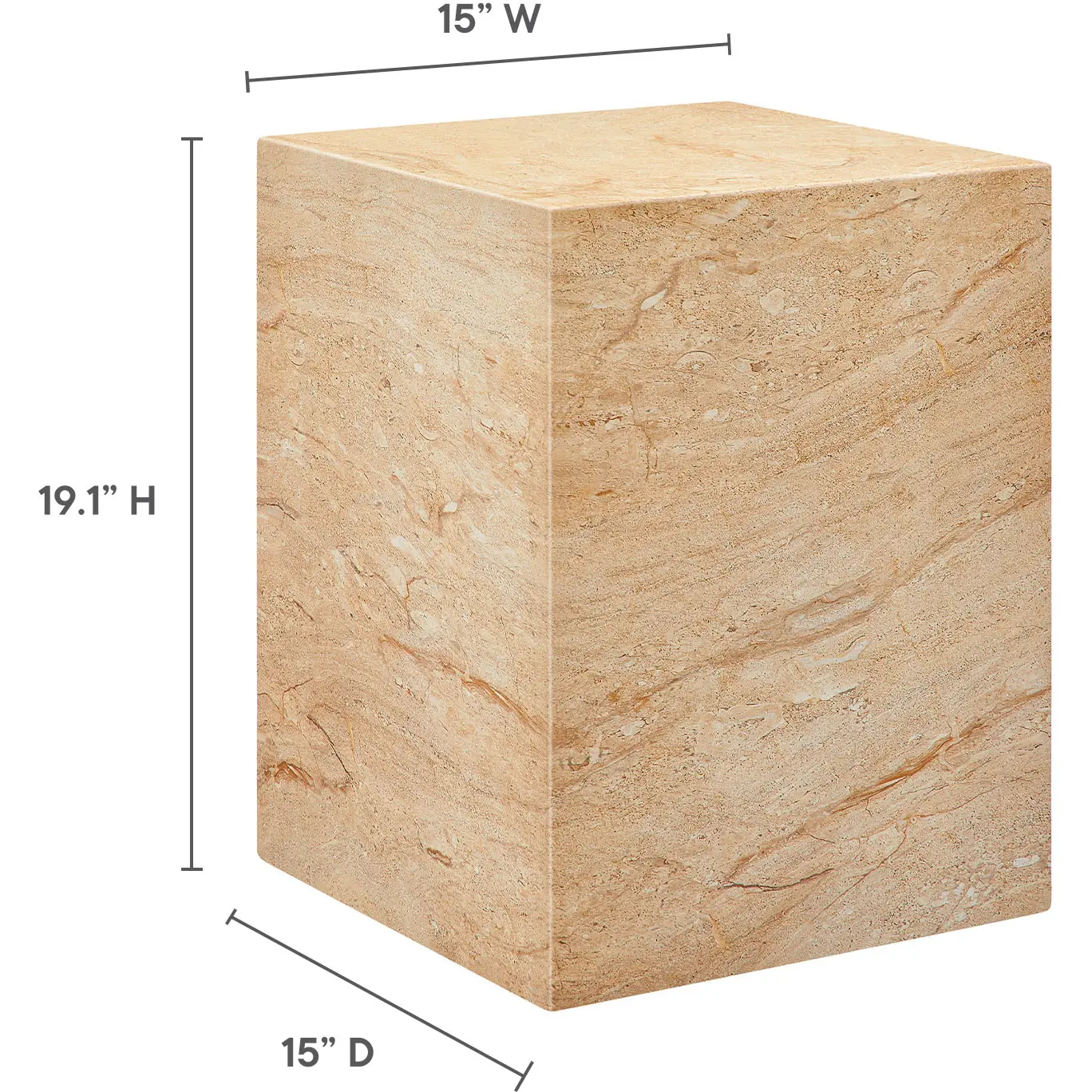 Modway EEI-7096-TRV Jordana Square Plinth Indoor Outdoor Side Table Travertine Finish Concrete