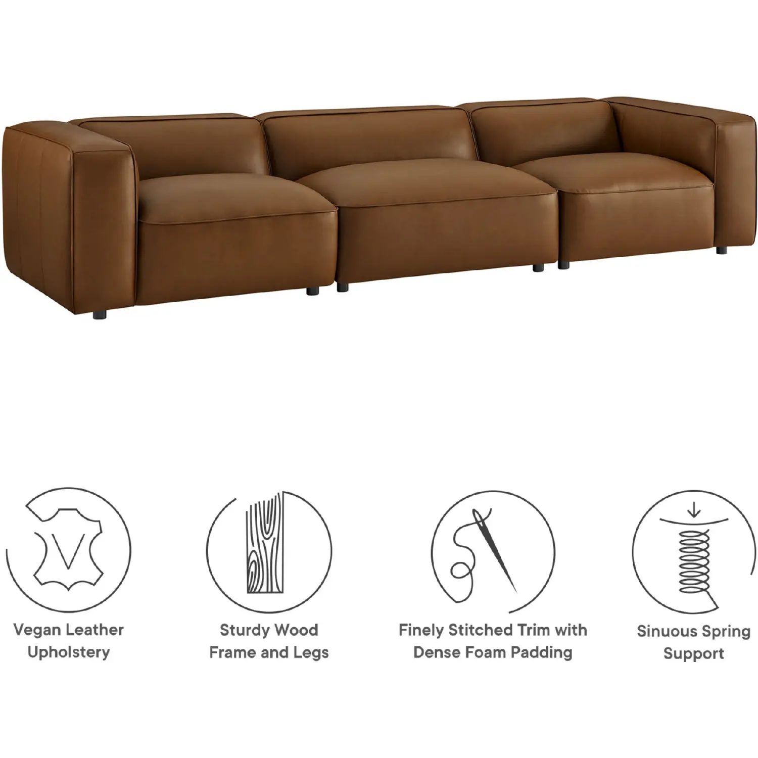 Modway EEI-7132-COF Auren 3 Piece Modular Sofa Coffee Brown Vegan Leather