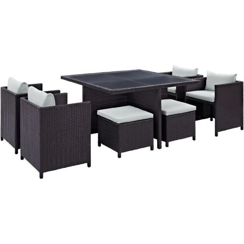 Modway Inverse 9 Pc. Outdoor Patio Dining Set in Synthetic Rattan with White Cushions