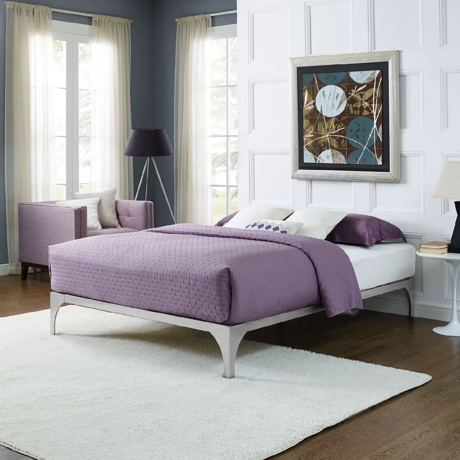 Modway Ollie King Bed Frame in Powder Coated Silver Steel
