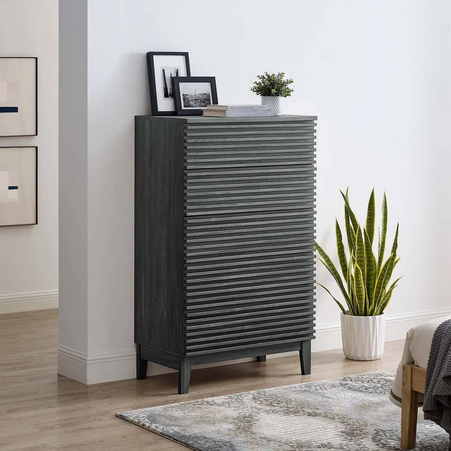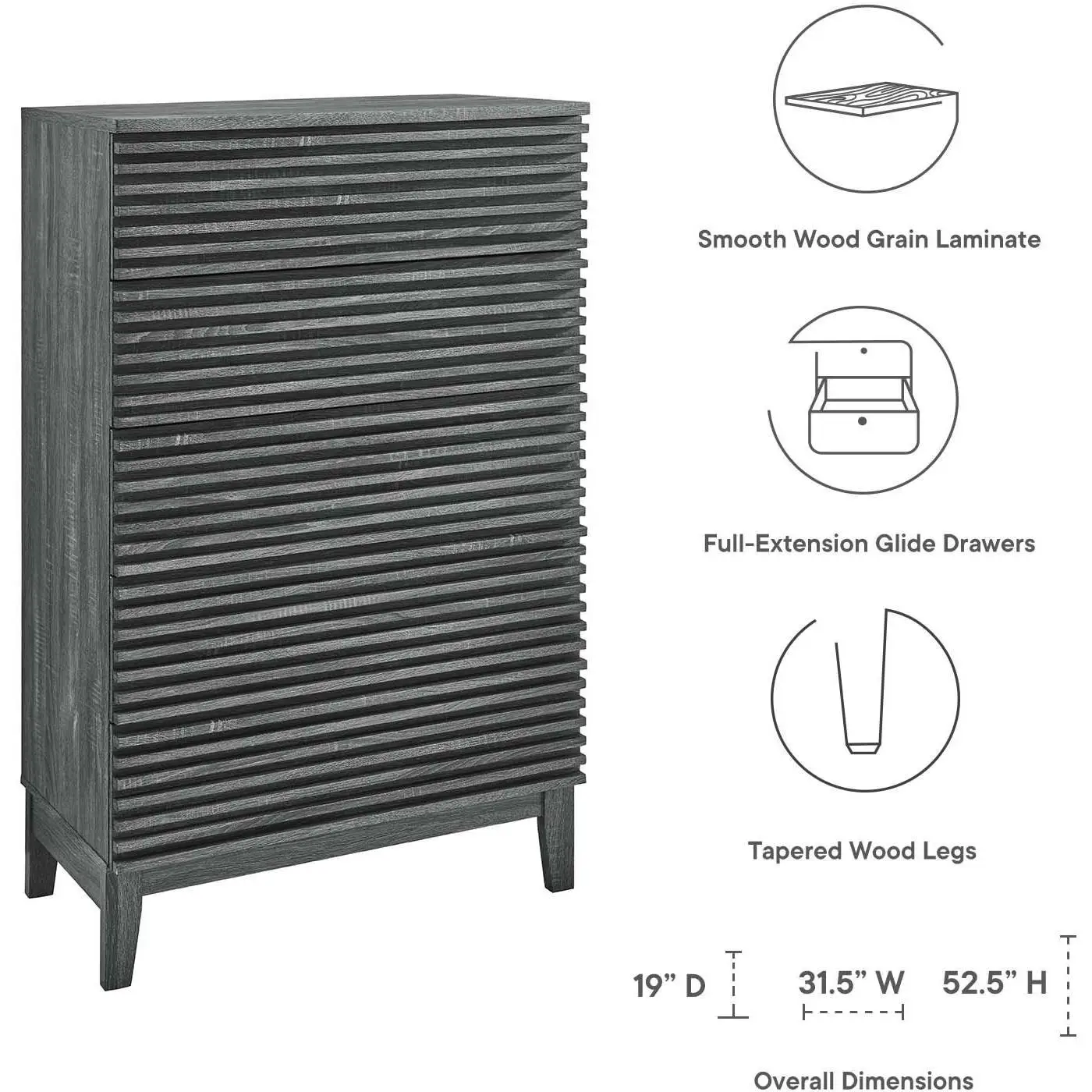 Modway MOD-6967-CHA Render 5 Drawer Dresser Chest Charcoal Gray Finsh