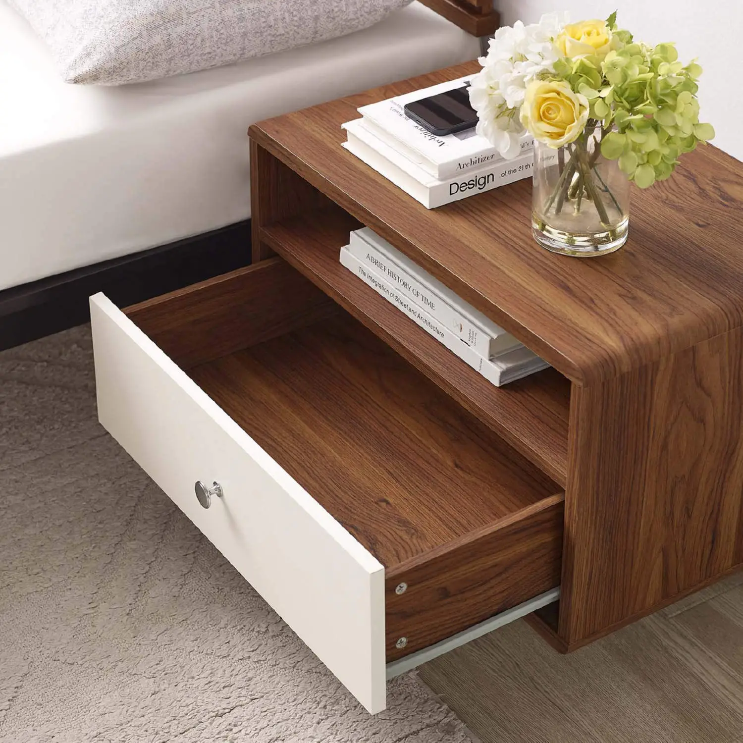 Modway Transmit Wall Mount Nightstand in Walnut Finish & White