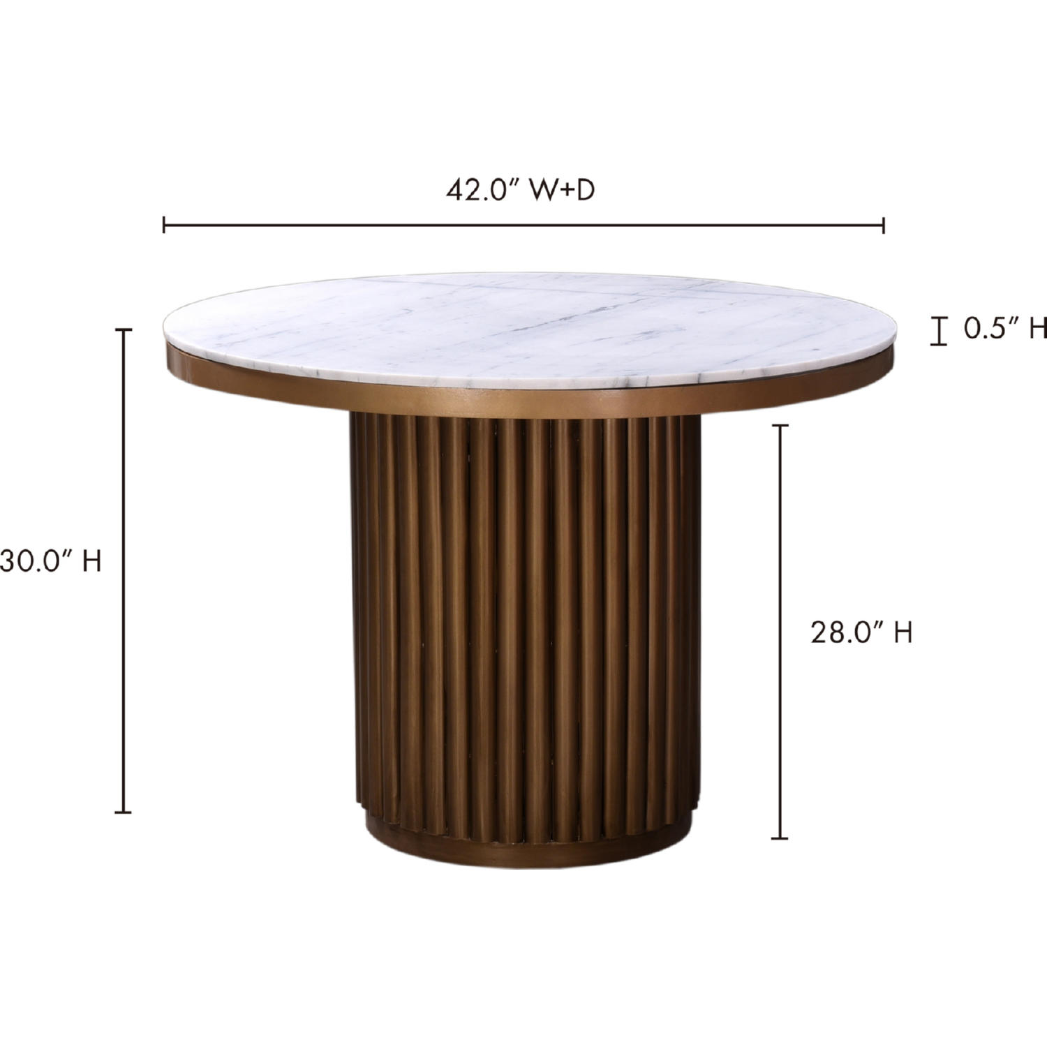 Moe's Tower 42" Round Dining Table White Marble & Brass