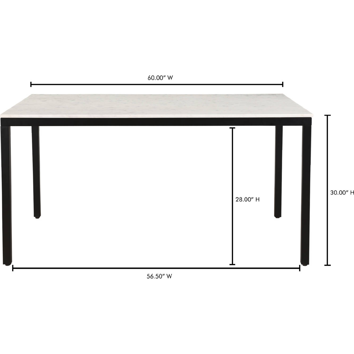Moe's Parson 60" Dining Table in White Marble & Black Iron