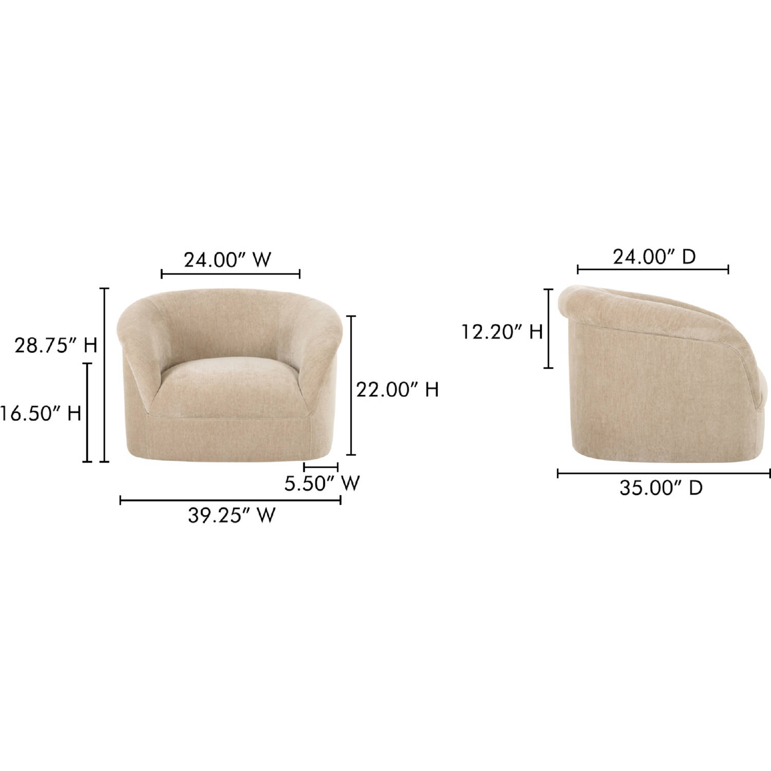Moe's OA-1039-34 Thora Accent Lounge Chair Beige Textured Velvet Fabric