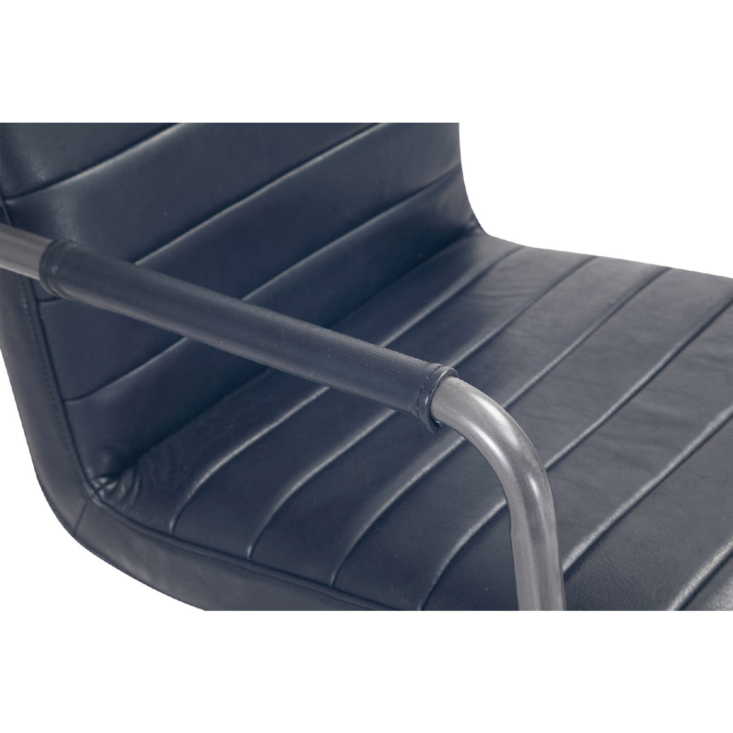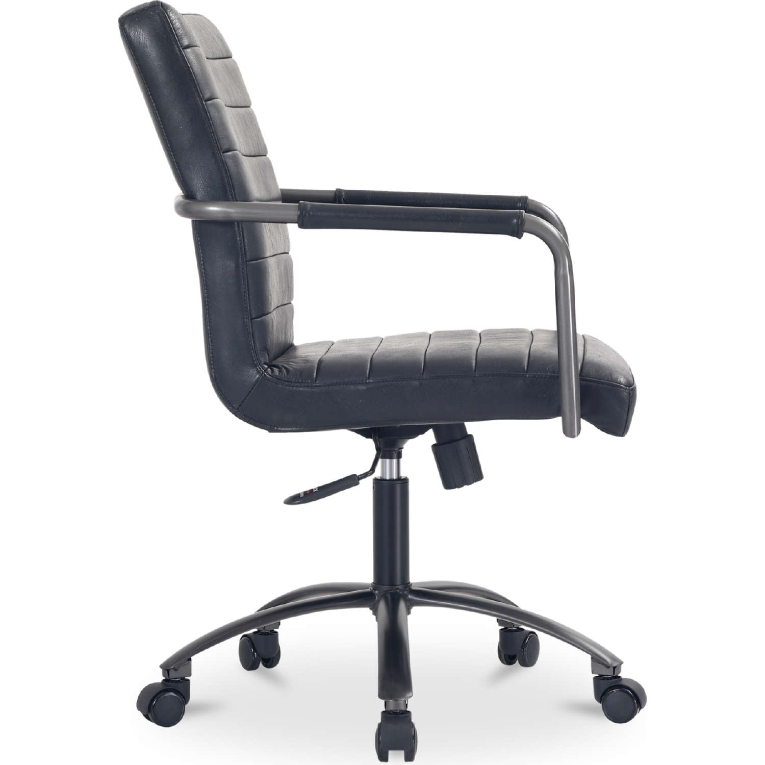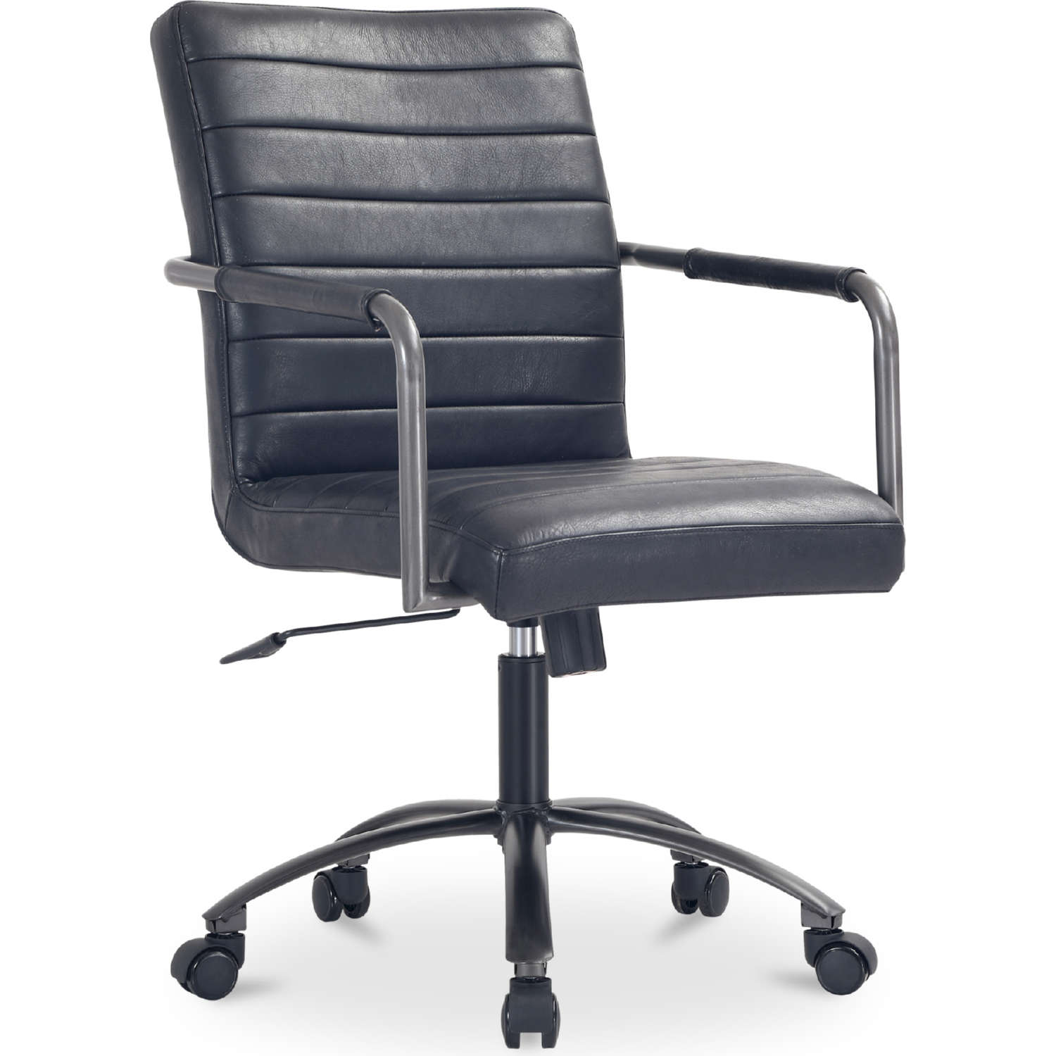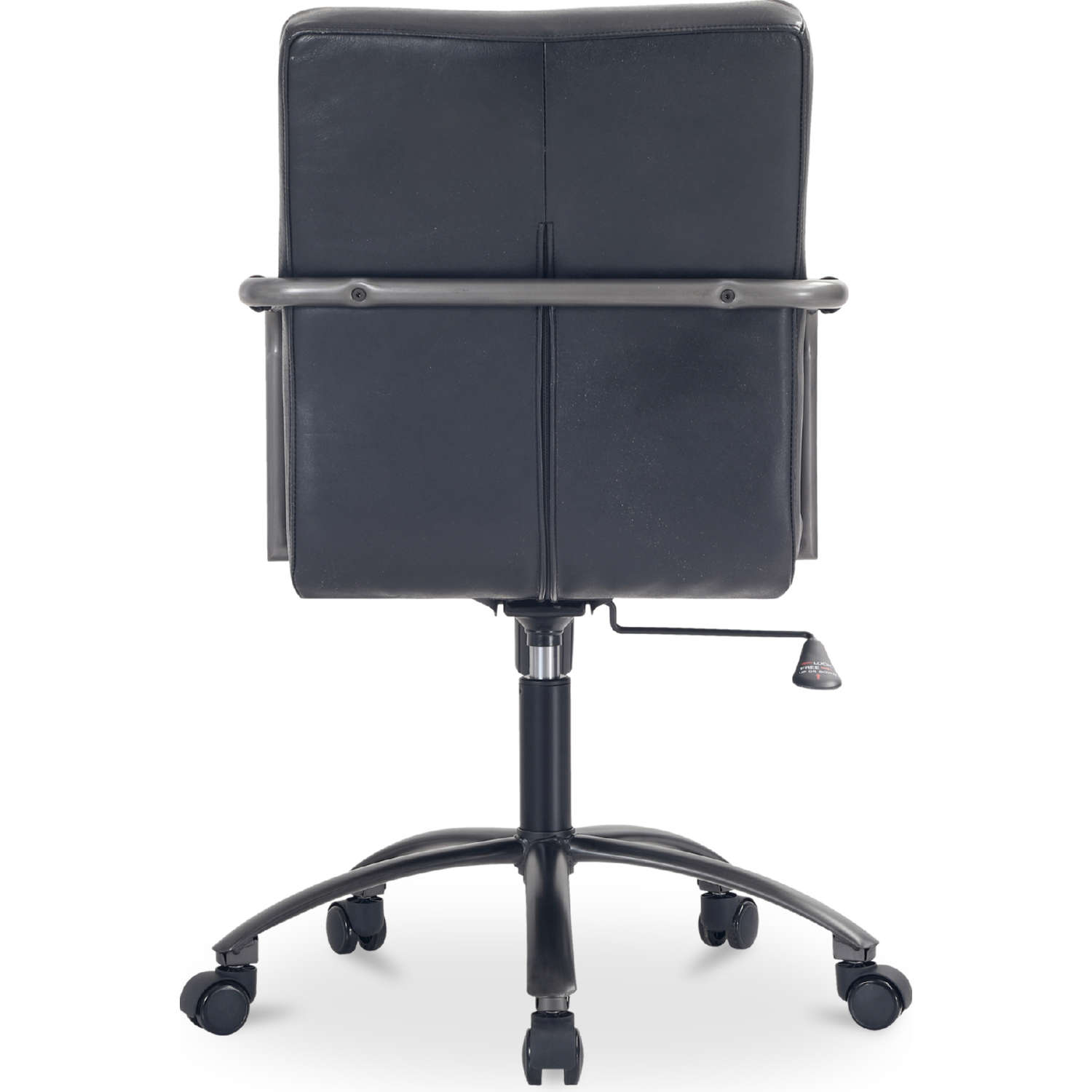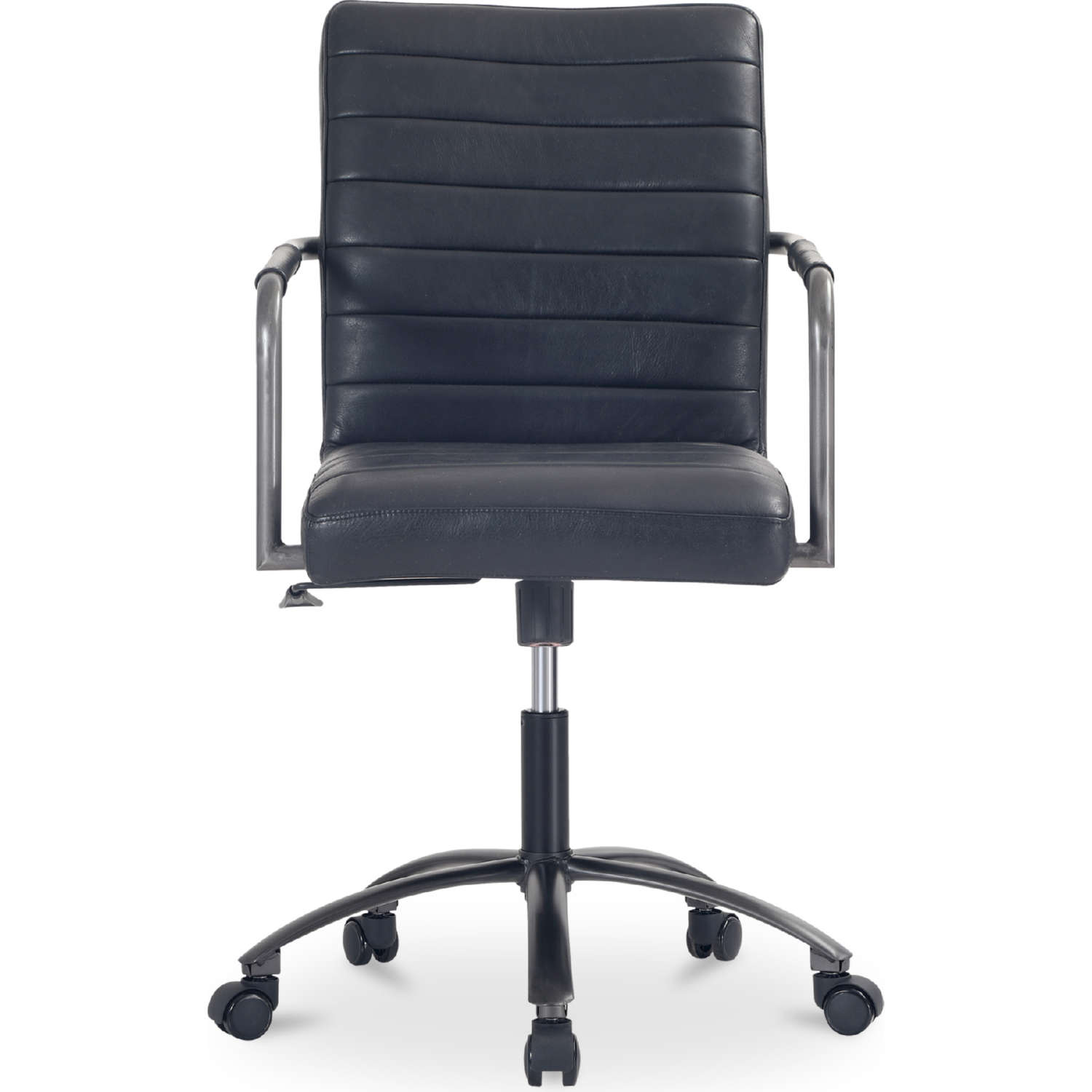 Moe's Roy Office Chair in Channel Seamed Black Leather Top Grain Leather