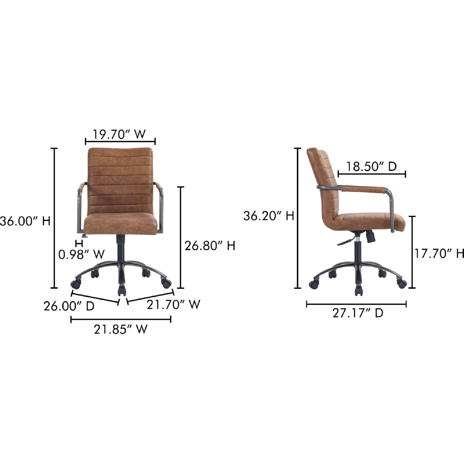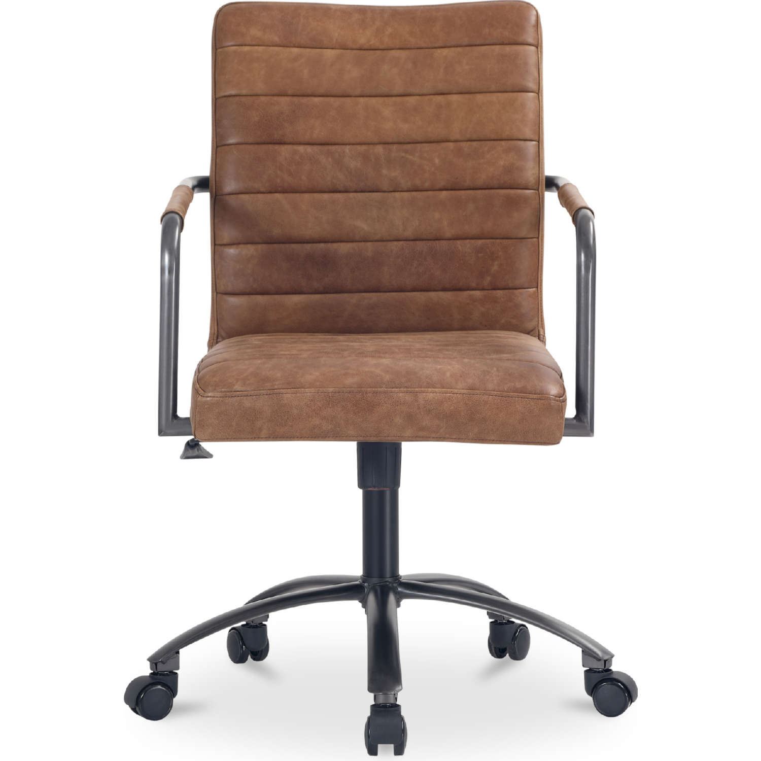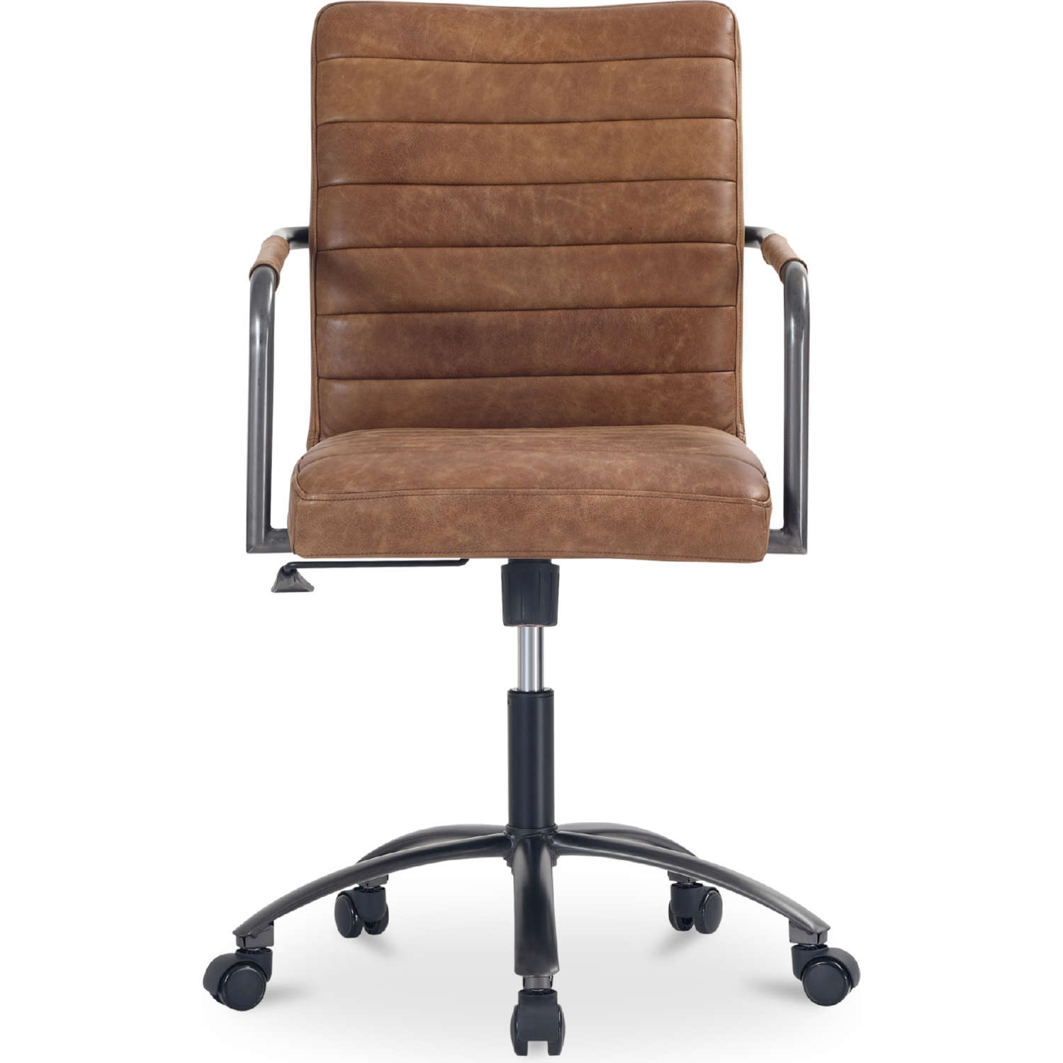 Moe's Roy Office Chair in Channel Seamed Open Road Brown Top Grain Leather
