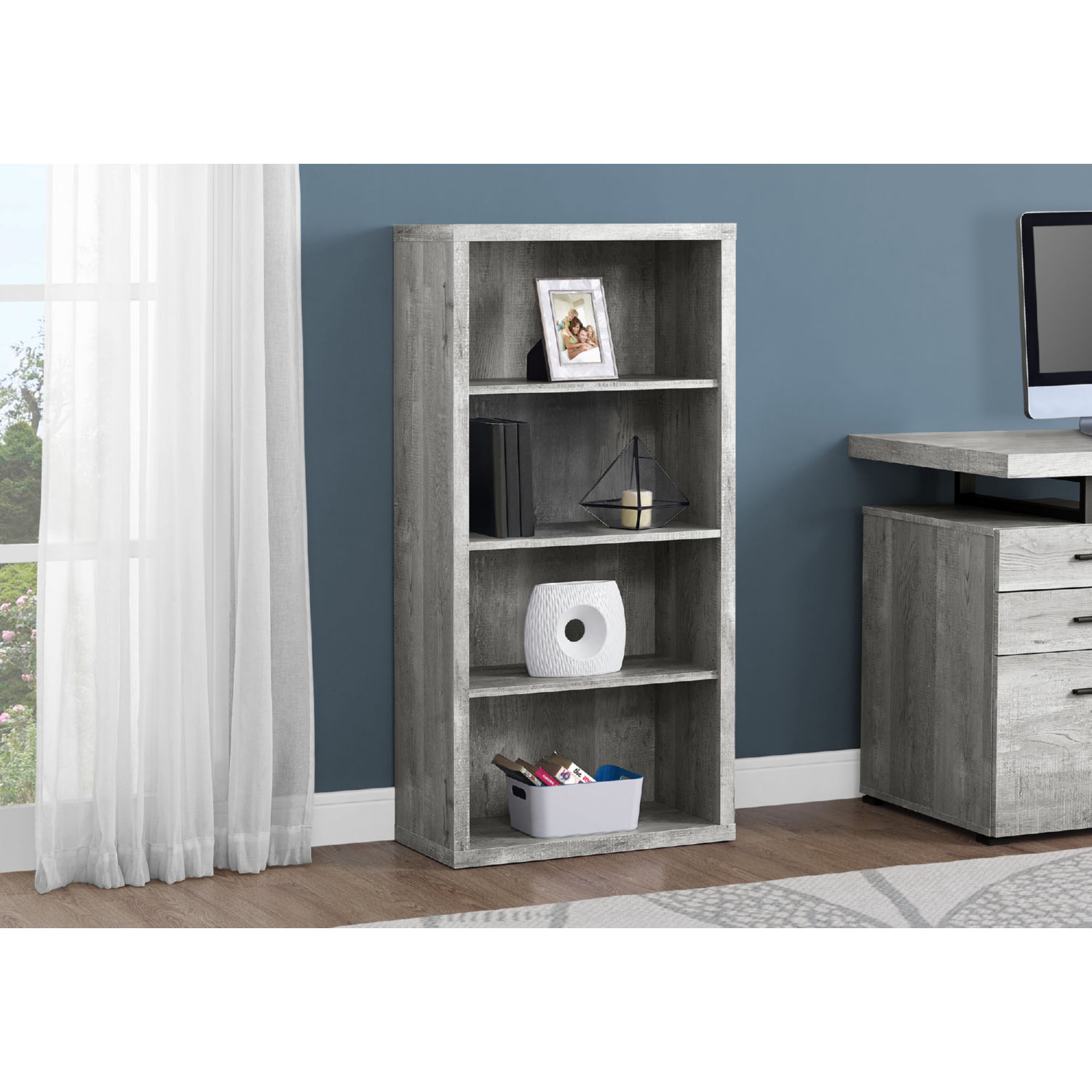 Monarch Specialties 48"H Bookcase in Grey Wood Grain with Adjustable Shelves