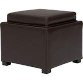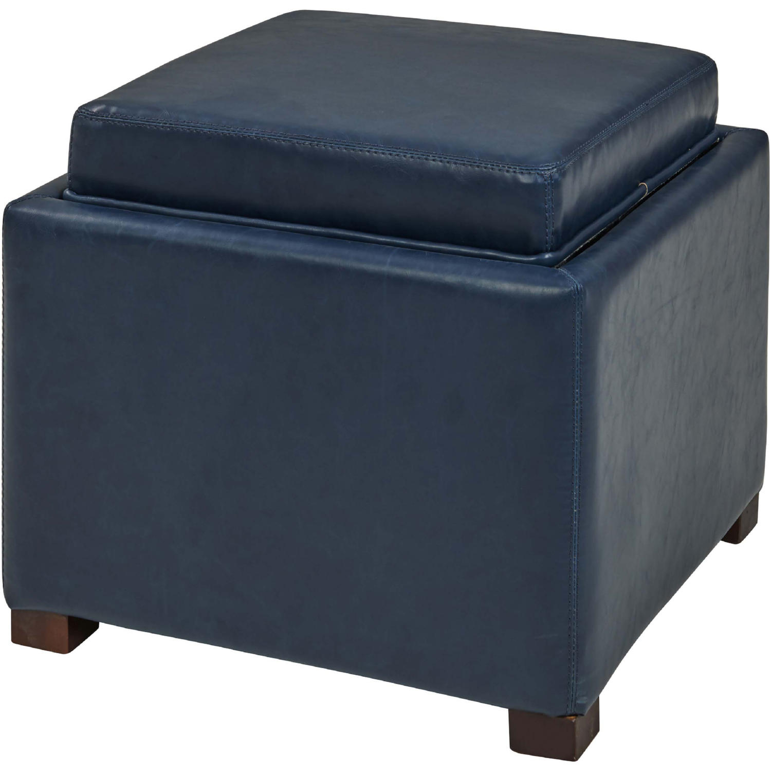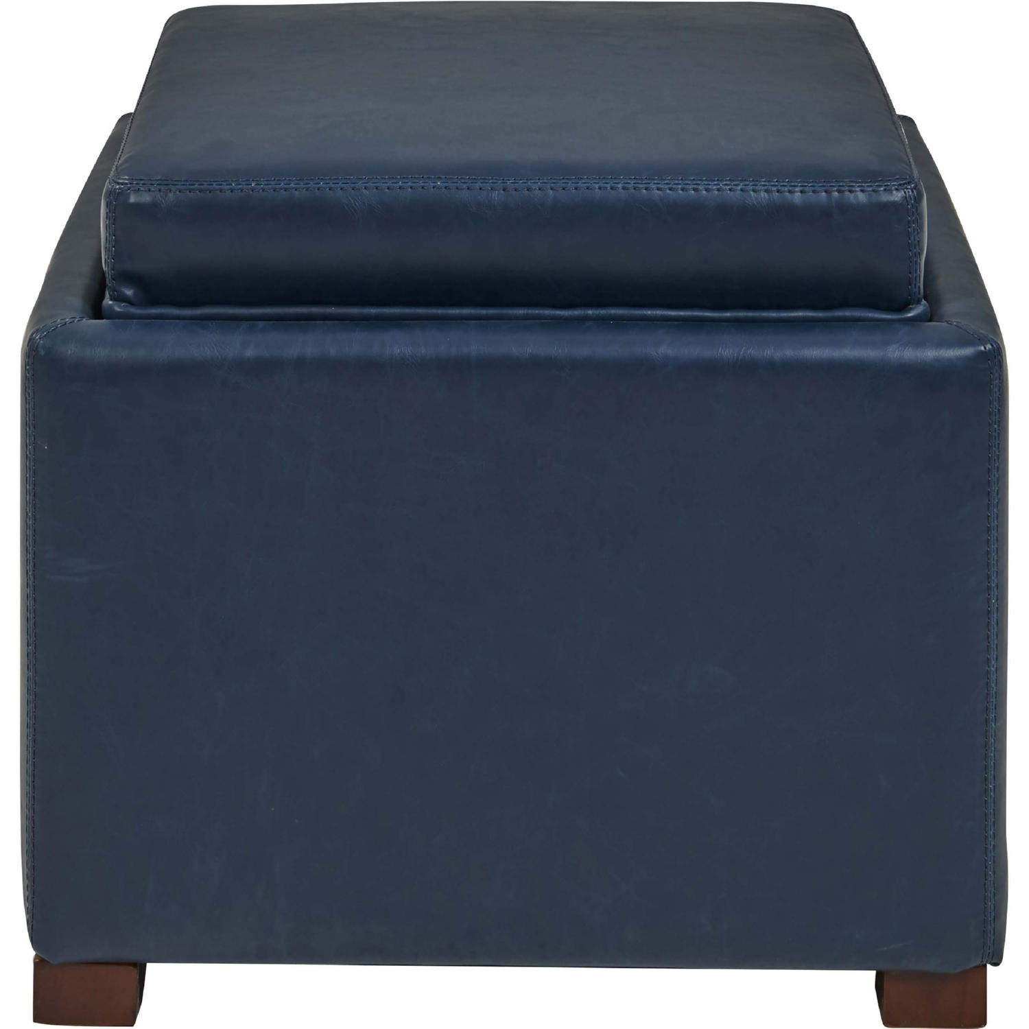New Pacific Direct 113042B-V05 Cameron Square Storage Ottoman w/ TrayVintage Blue Bonded Leather on Black Legs