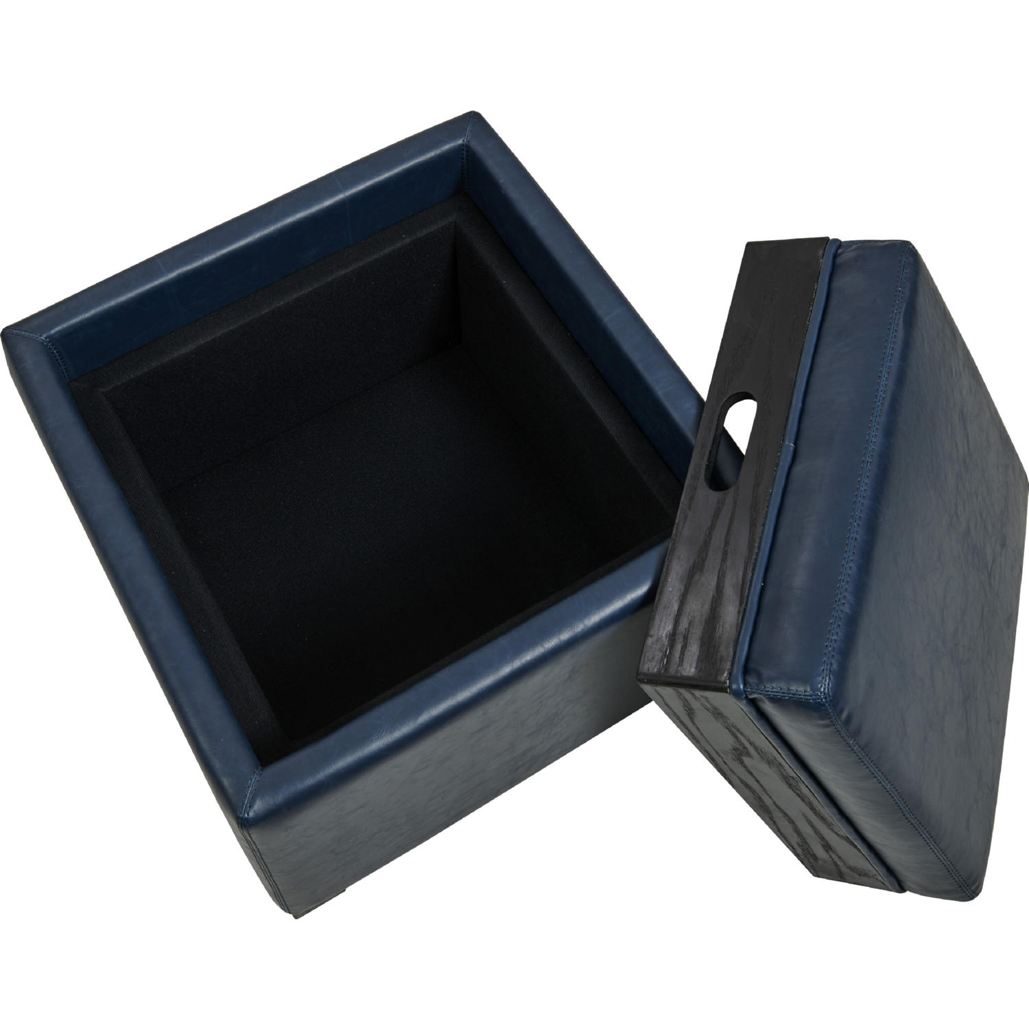New Pacific Direct Cameron Square Storage Ottoman with Tray in Vintage Blue Bonded Leather on Black Legs