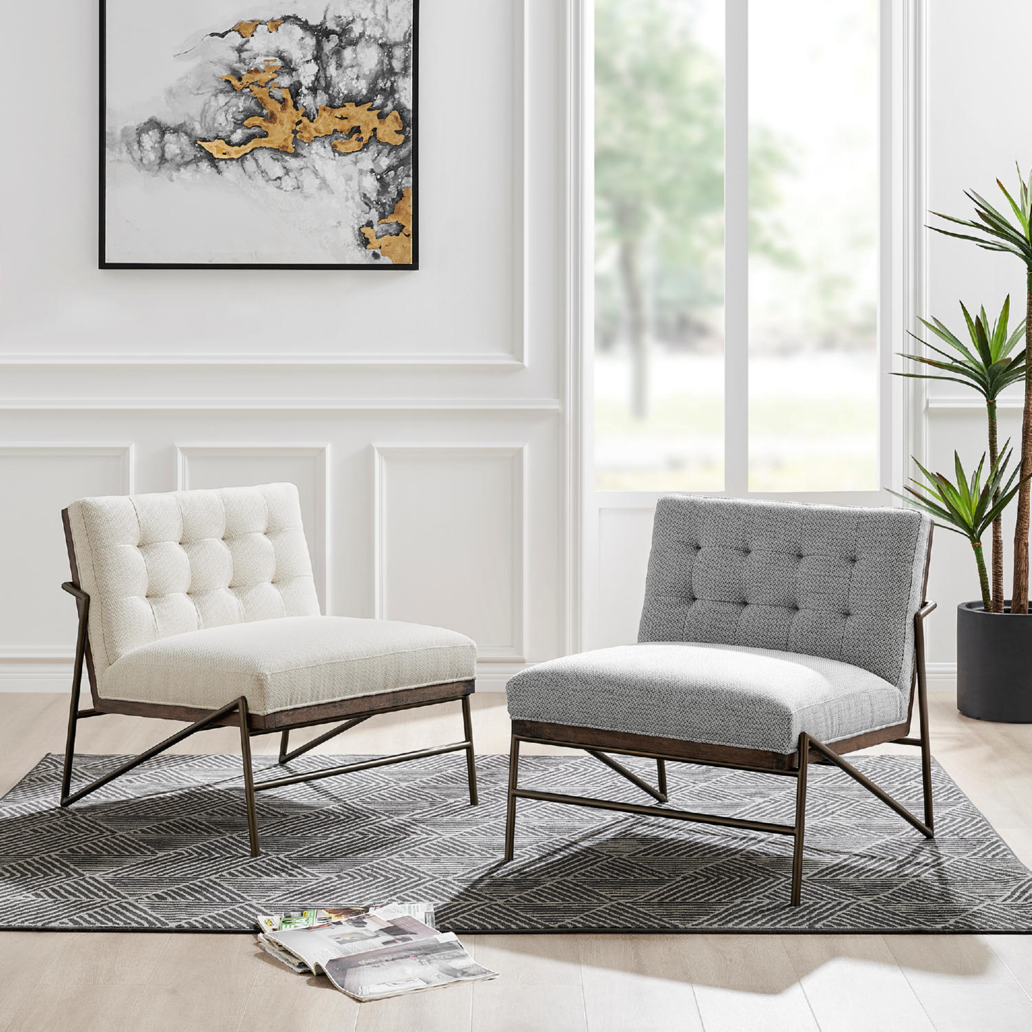 New Pacific Direct 1250033-276 Marlow Accent ChairTufted Cream Fabric & Bronze Steel