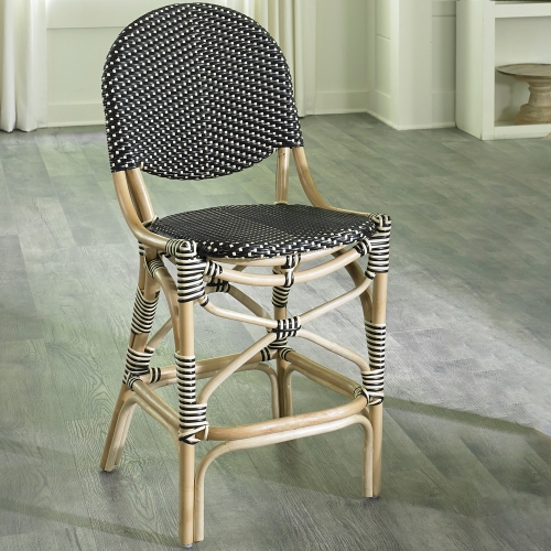 Padma's Plantation French Bistro Counter Stool in Rattan & Black & Beige All Weather Weave