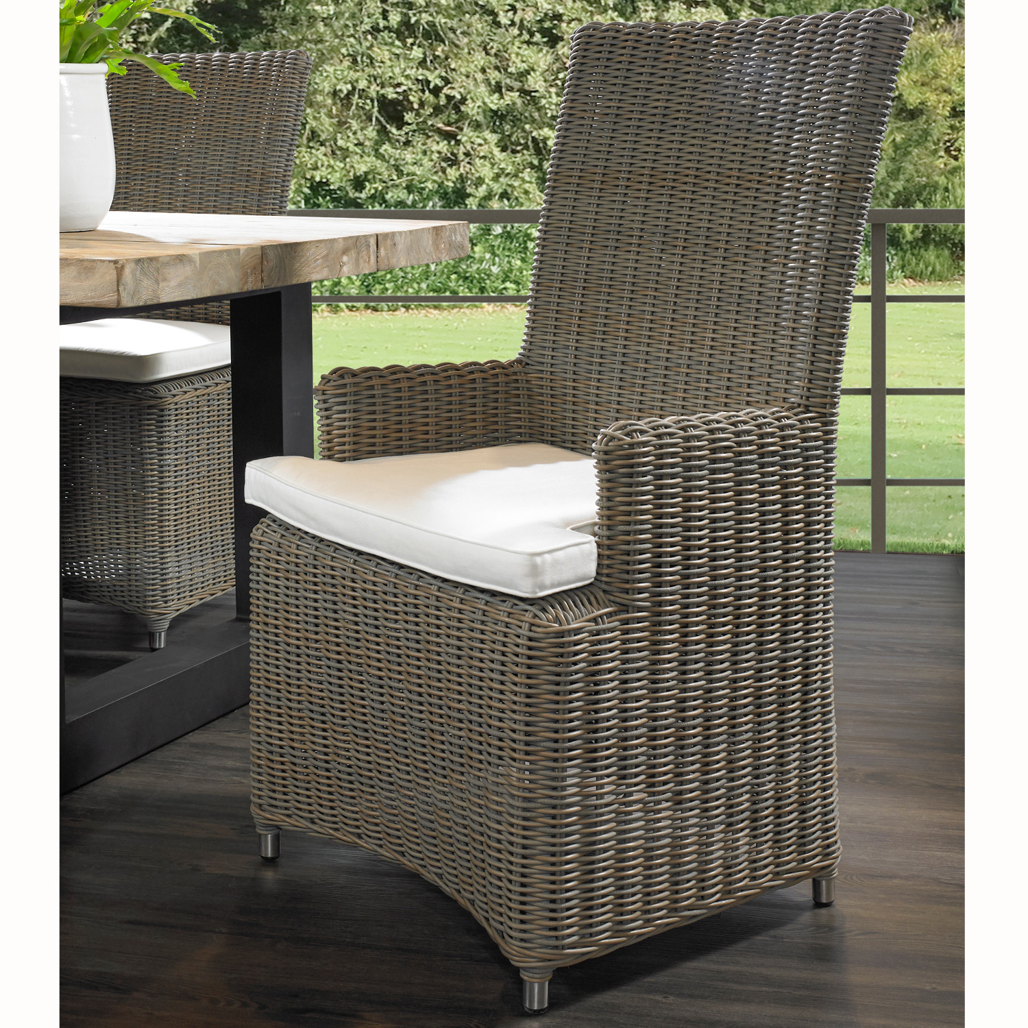 Padma's Plantation Nico Outdoor Arm Dining Chair in Grey Wicker & White Fabric (Set of 2)