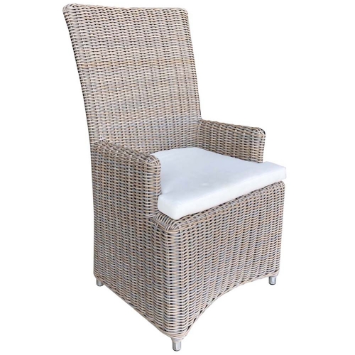 Padma's Plantation OL-NCO11-ECO Nico Outdoor Arm Dining Chair Grey Wicker & White Fabric (Set of 2)