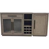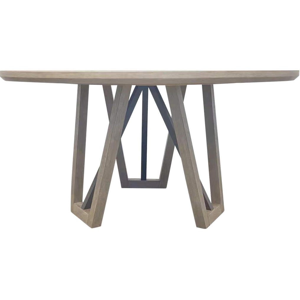 • Angular, architecturally inspired wood table base in Moonstone taupe finish
