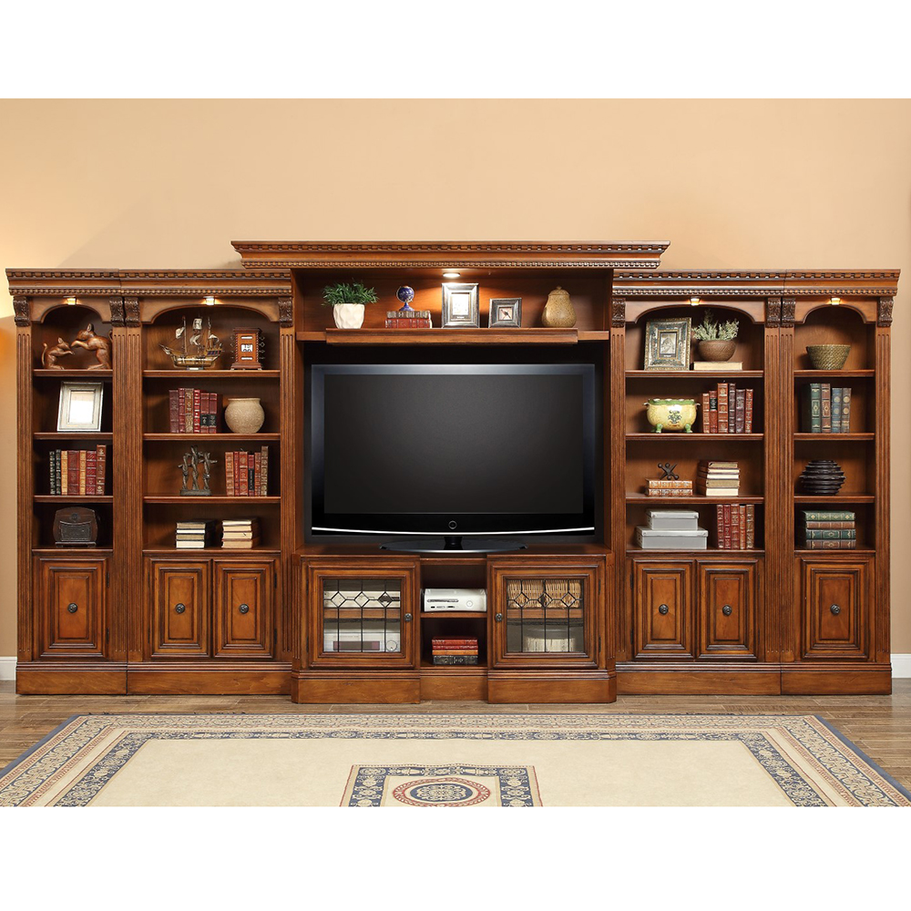 Parker House HUN#6PC-IEW Huntington Inset Entertainment Wall 6 Piece Antique Vintage Pecan