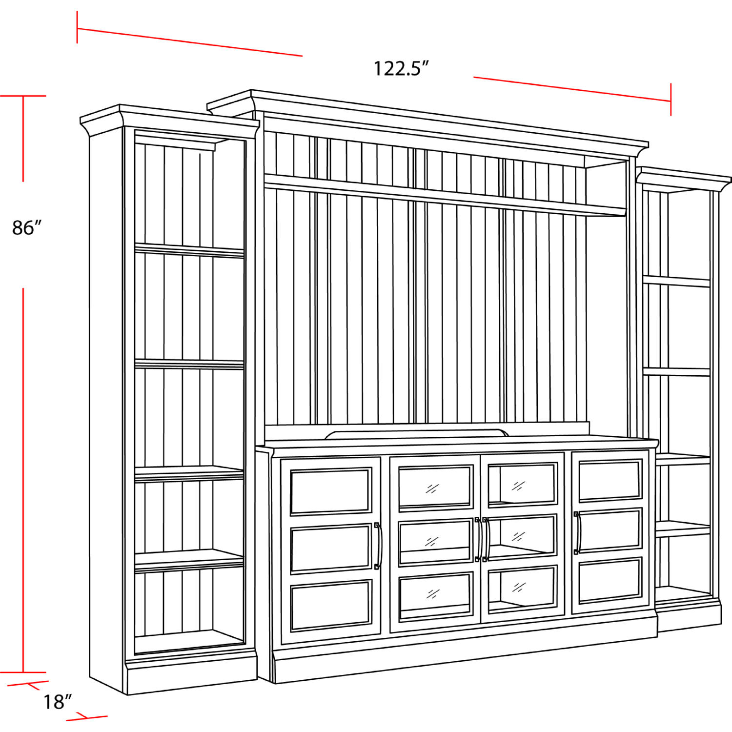 Dimensions: 122.5"W x 18"D x 86"H