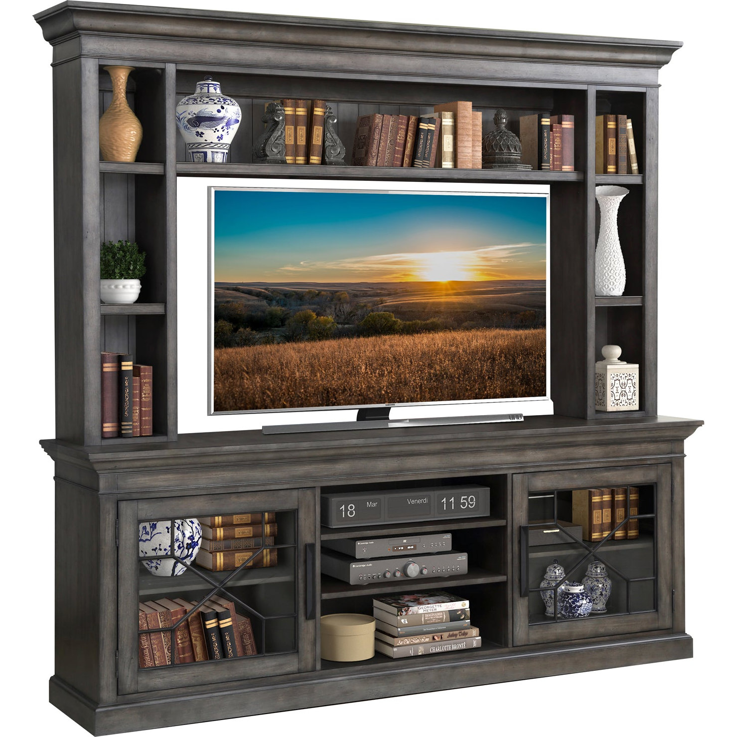 Parker House Sundance 92" TV Stand Console & Hutch in Smokey Grey Wood
