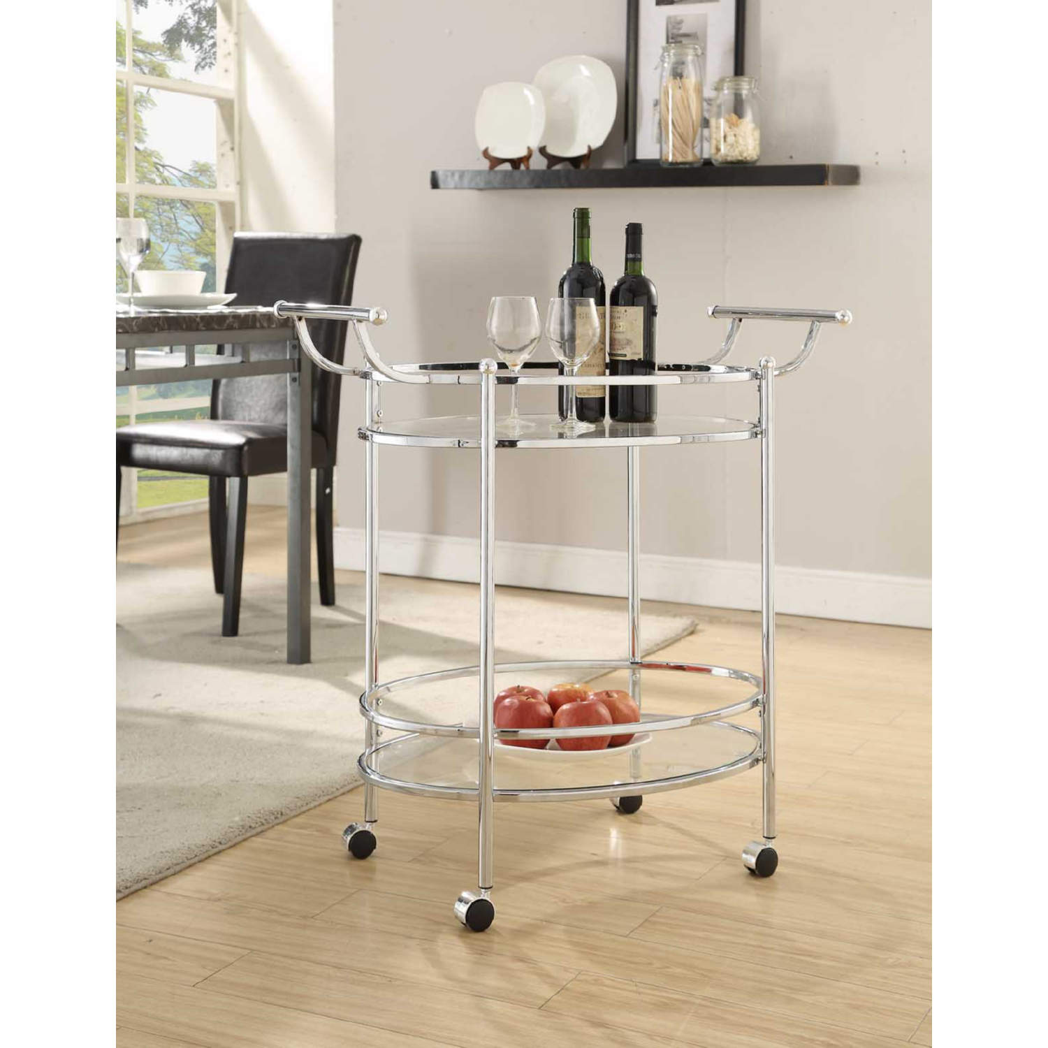 Powell 13K169 Service Bar Cart in Chrome Steel & Glass