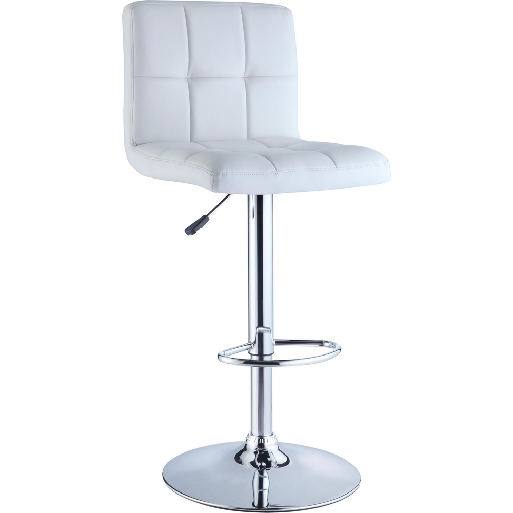 Powell 211-851 White Quilted Faux Leather Seat & Chrome Adjustable Height Bar Counter Stool