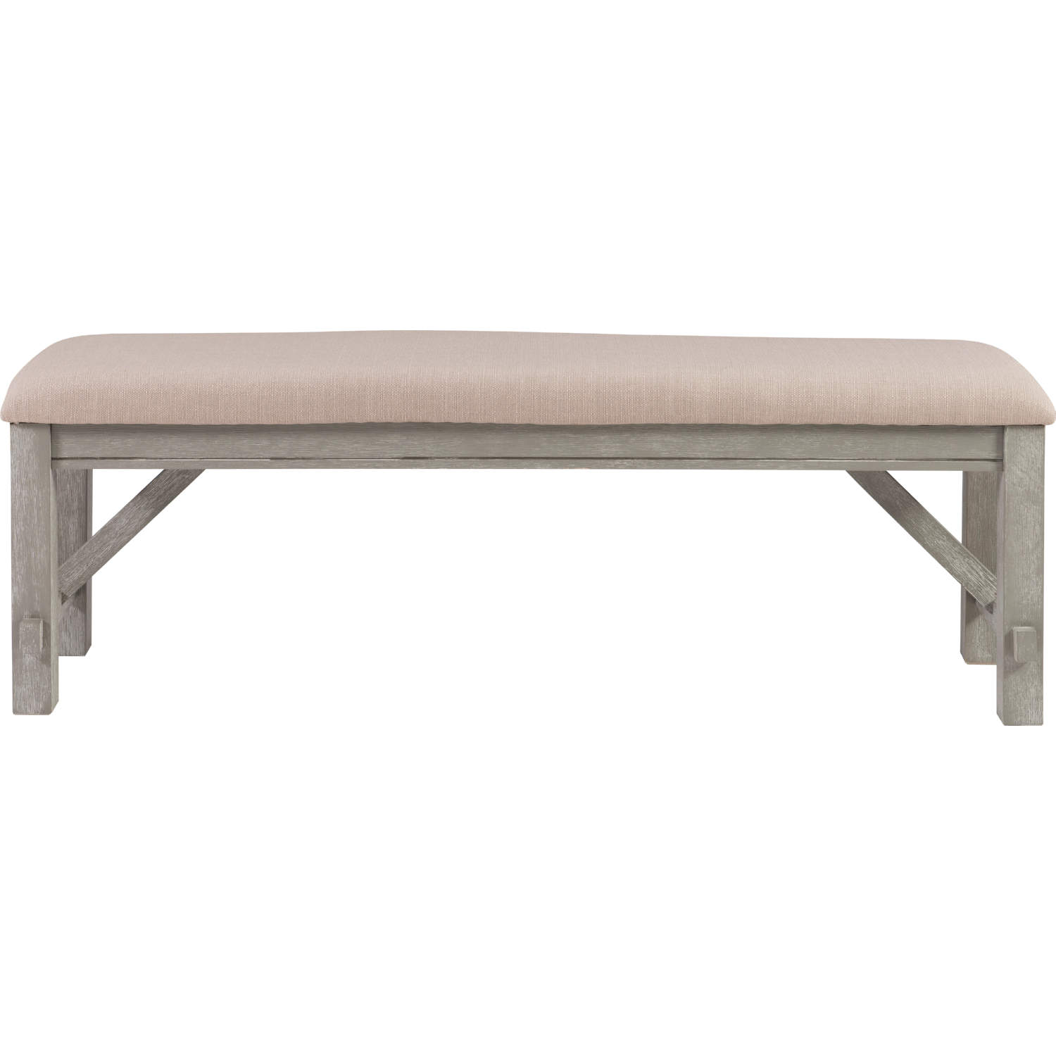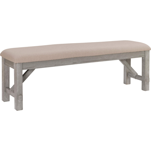 Powell 457-260B Turino Dining Bench in Weathered Grey Wood & Tan Fabric