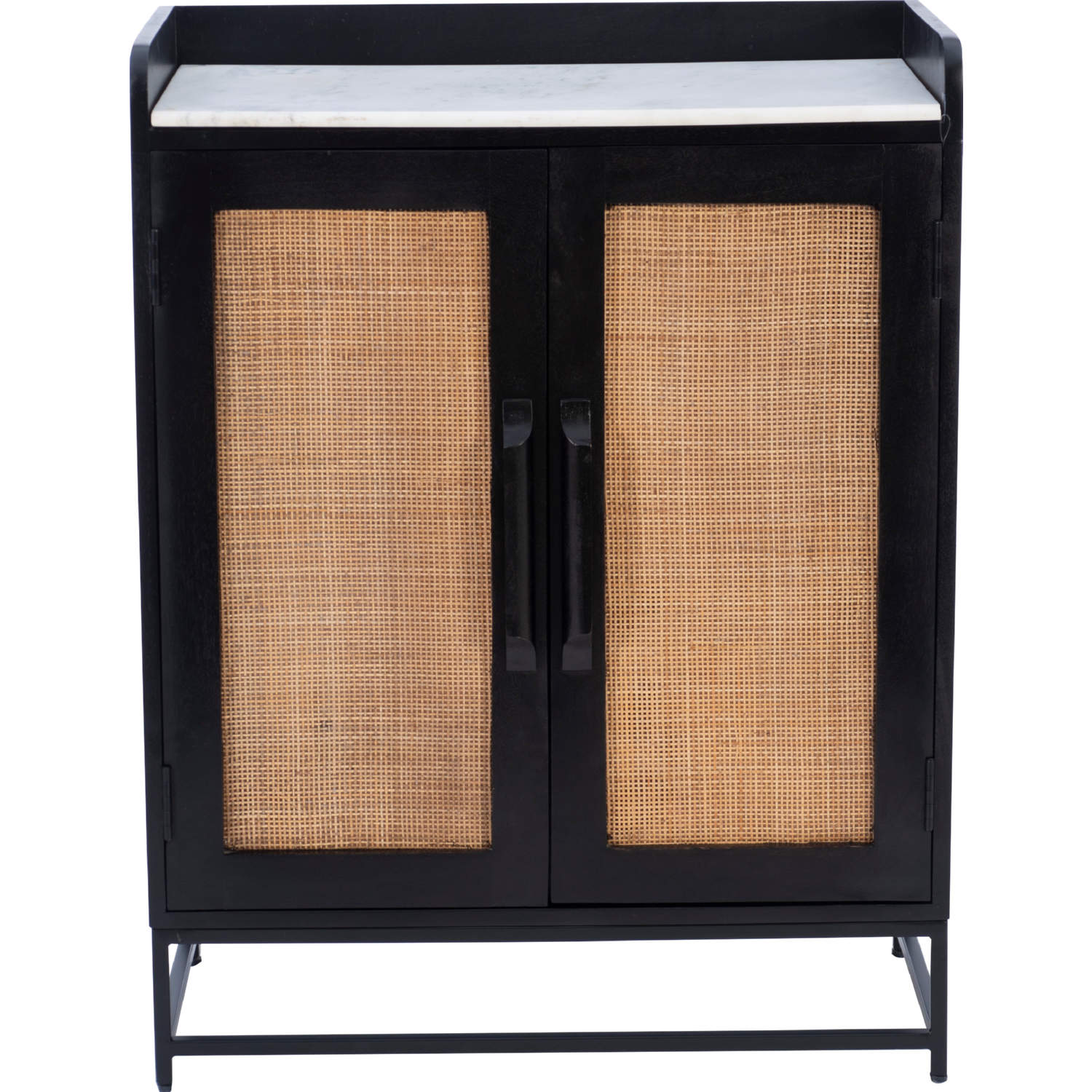 Powell D1239A19BLKBC Janie Bar Cabinet in Black Lacquer, Rattan & White Marble