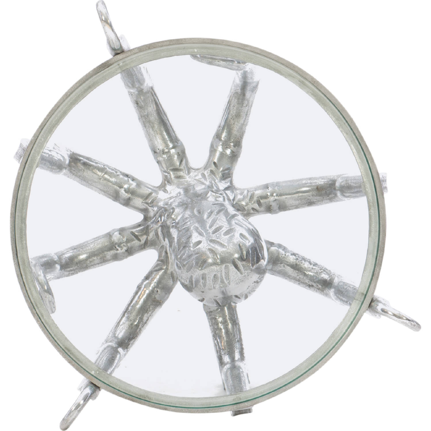 • Round 8mm tempered glass top securely suspended by raised tentacle legs holds up to 35 pounds
