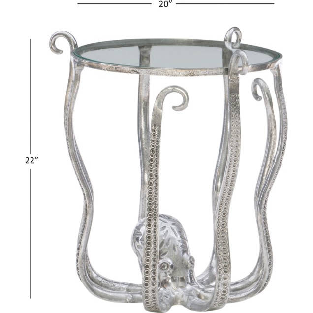 Powell D1339A20 Octiana Octopus Side Table Tempered Glass Silver