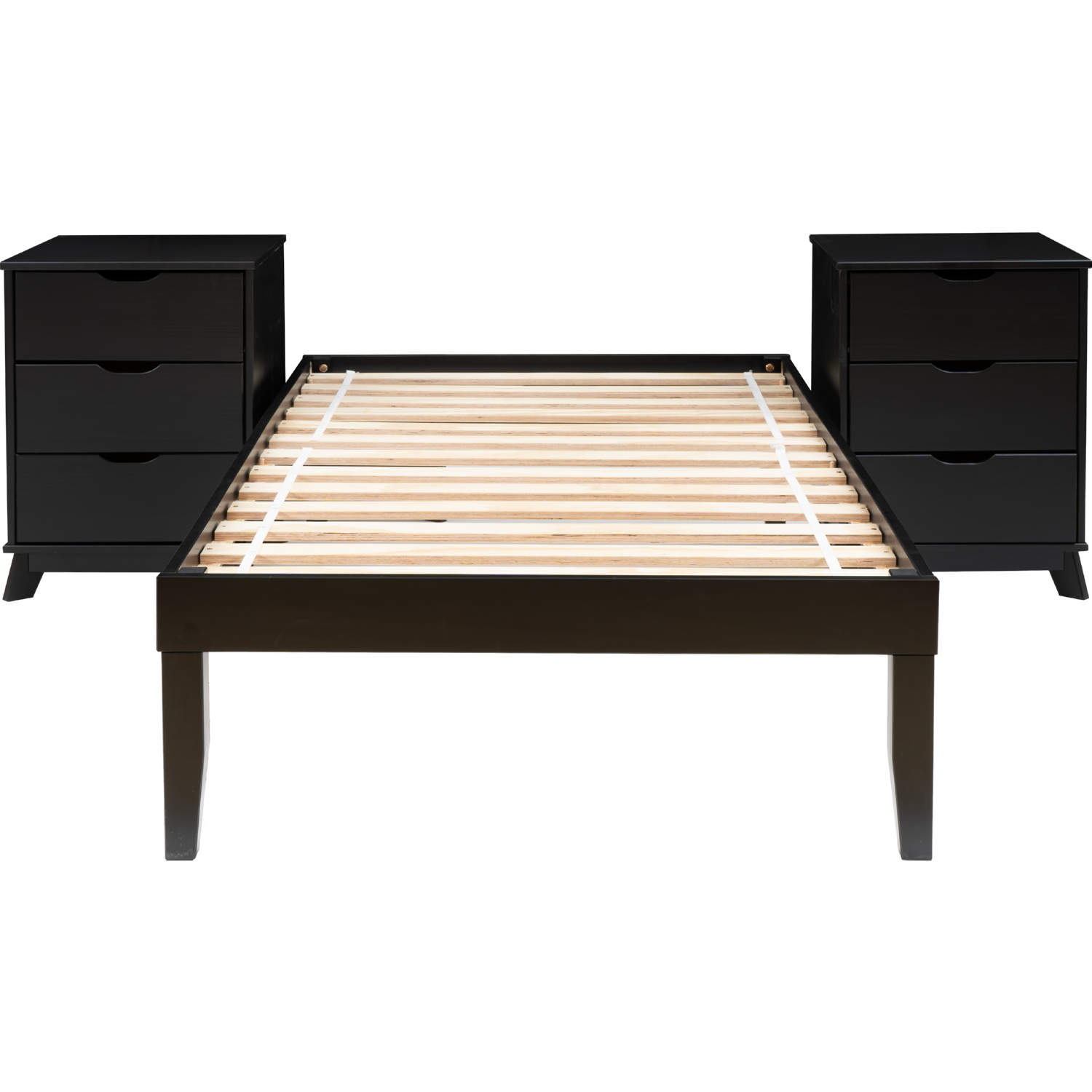 Powell D1507R23BLKTB3NS Polly 2 Piece Twin Bed & 3 Drawer Nightstand Set in Black
