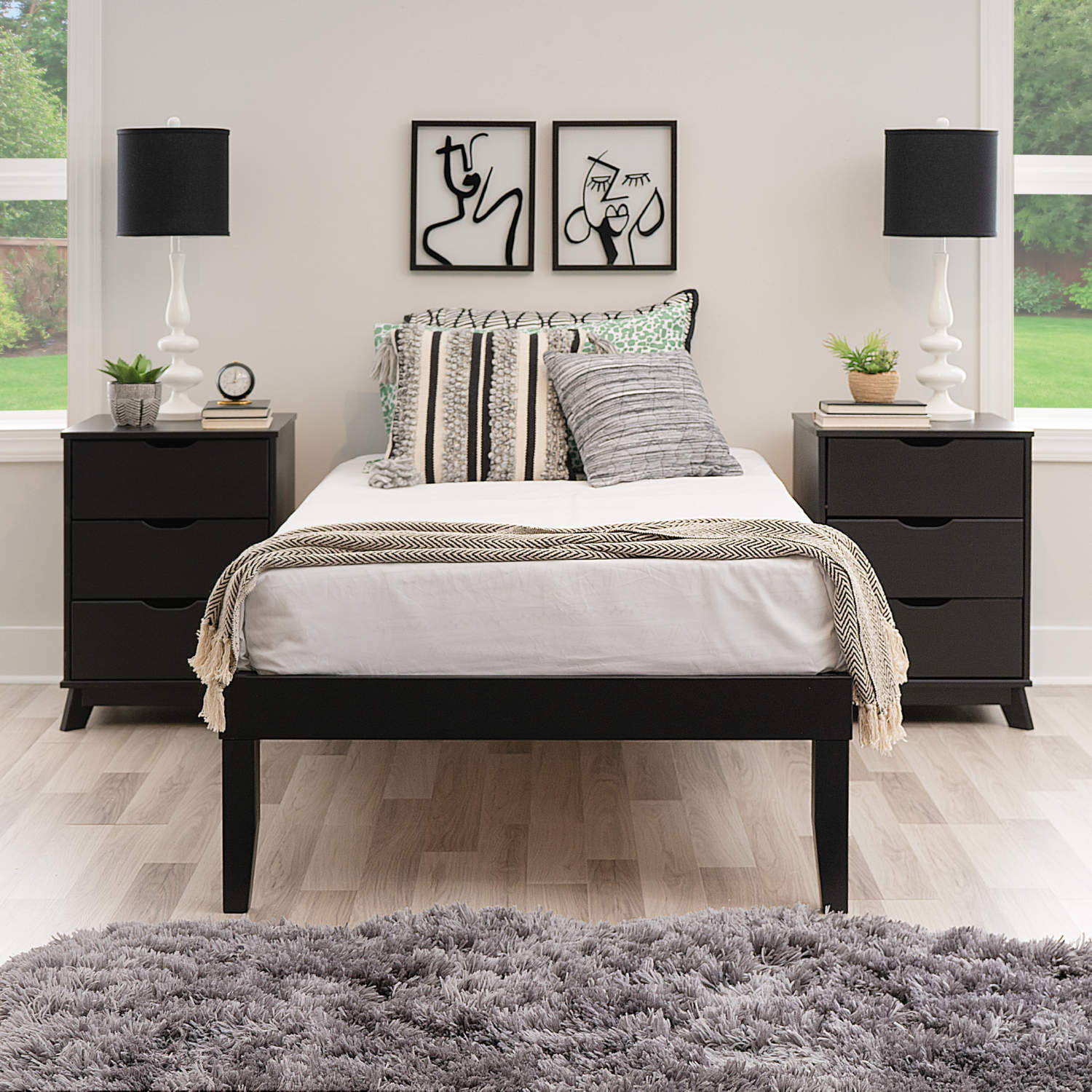 Powell Polly 2 Piece Twin Bed & 3 Drawer Nightstand Set in Black