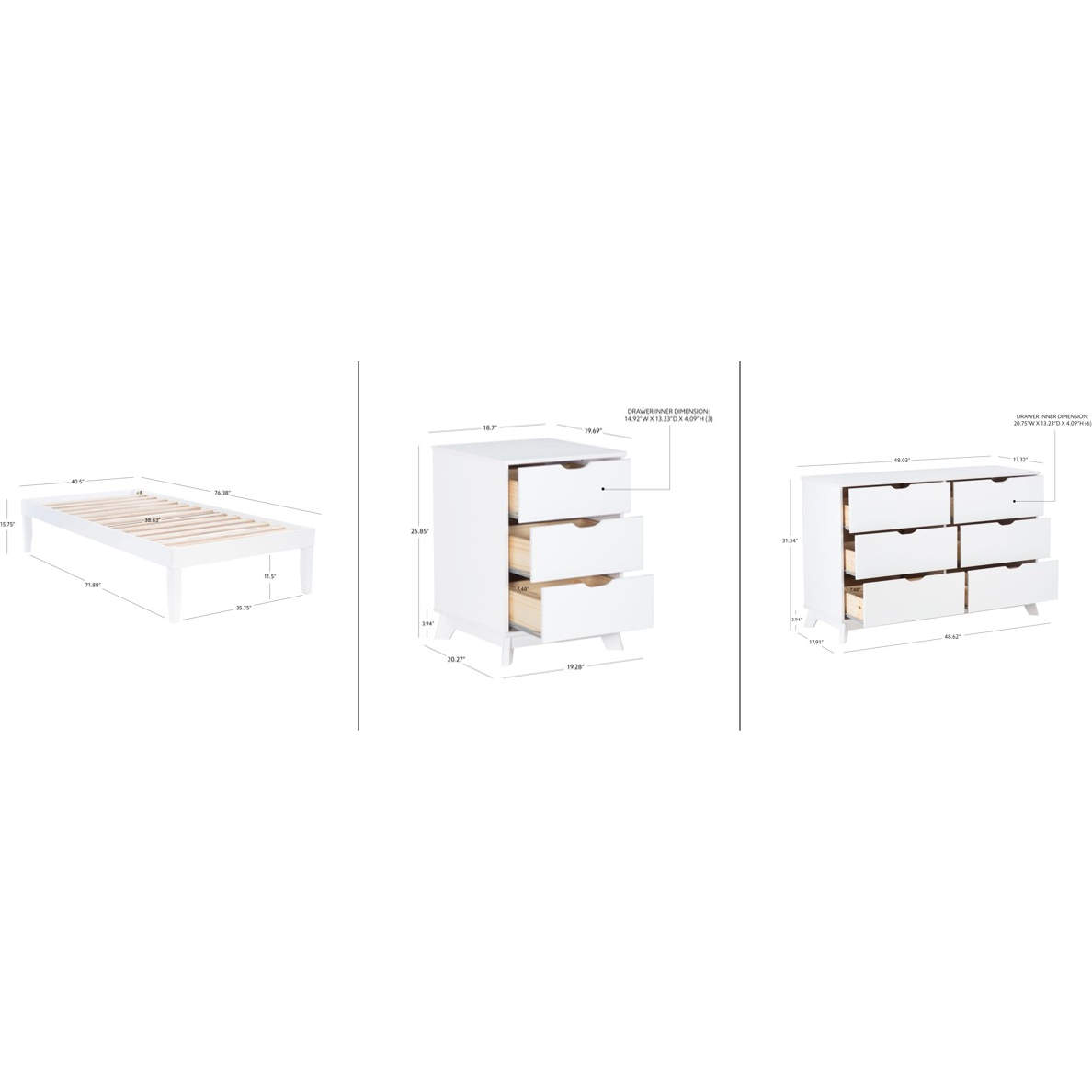 Dimensions: Dresser: 48.63"W x 17.88"D x 31.38"H, Leg Height: 3.94", Dresser Drawers: 20.75" x 13", Nightstand: 19.25"W x 20.25"D x 26.88"H, Leg Height: 3.94", Nightstand Drawers: 14.9" x 13.2"