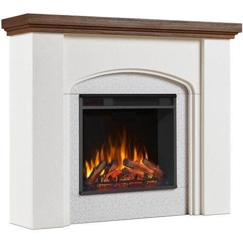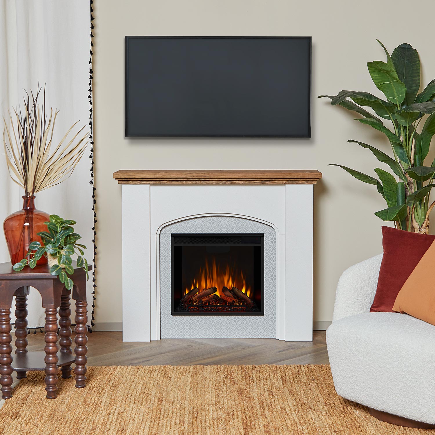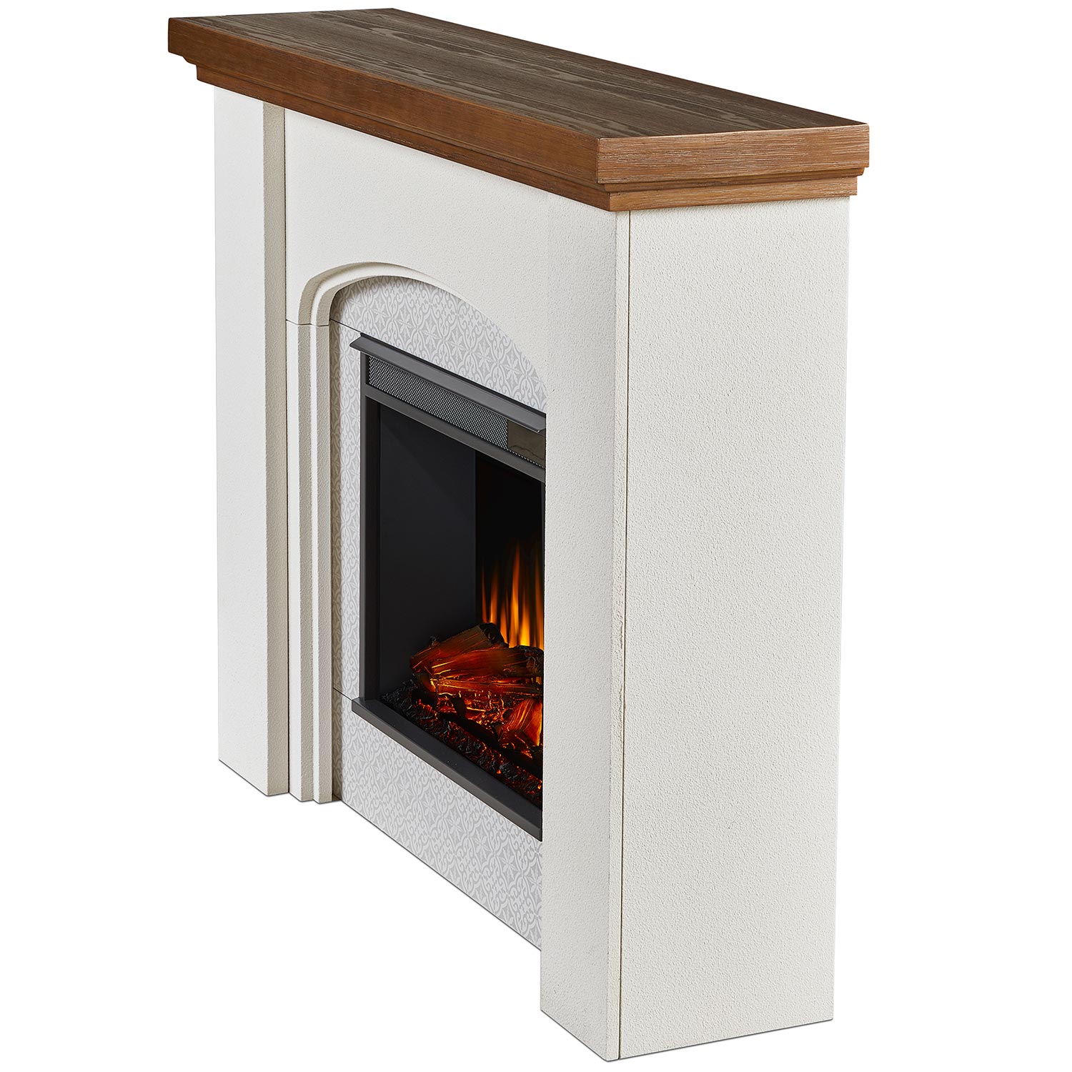Real Flame Anika 49" Electric Fireplace in White Stucco & Wood
