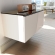 • Sleek warm white, gloss doors and sides with black, tempered glass top