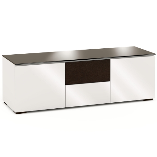 Salamander Designs C/MM236/GW/BK Chameleon Miami 236 64" TV Stand AV Cabinet Gloss Warm White Black Glass Top