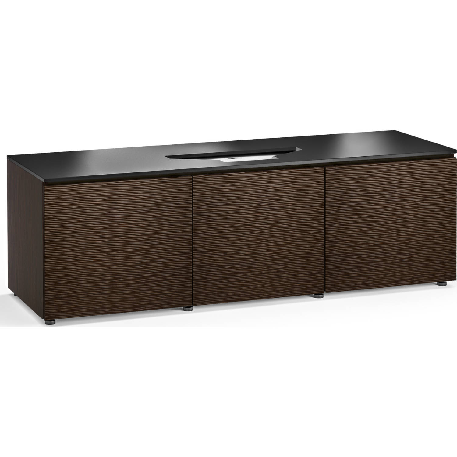 • Textured wenge doors with black, tempered glass top and wenge finished side panels