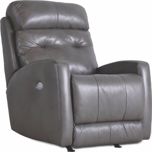 Southern Motion Bank Shot Power Headrest Rocker Recliner in Gunmetal Grey Leather