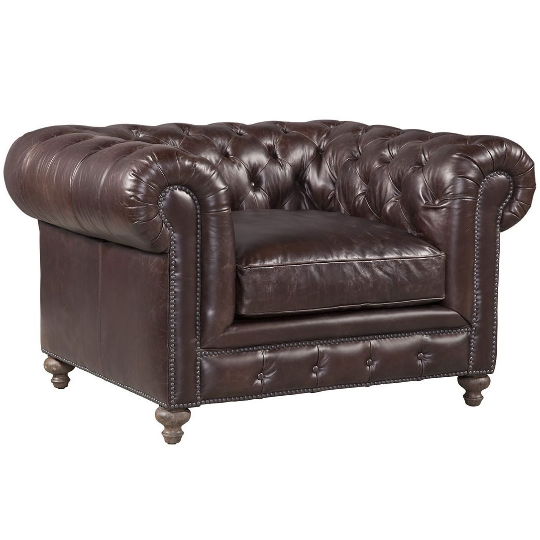 Spectra Home Furnishings Finn Accent Chair in Valencia Dark Brown Leather with Nail Trim