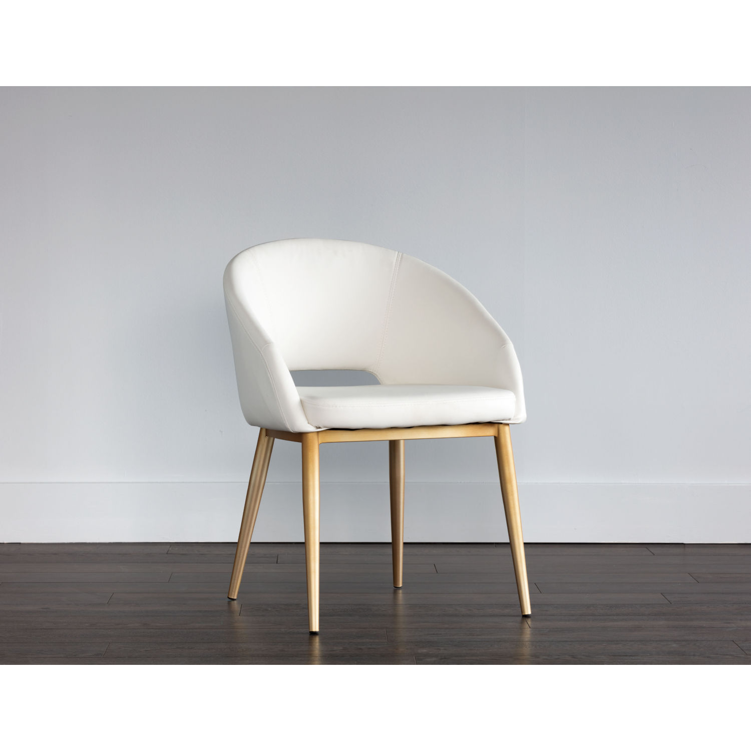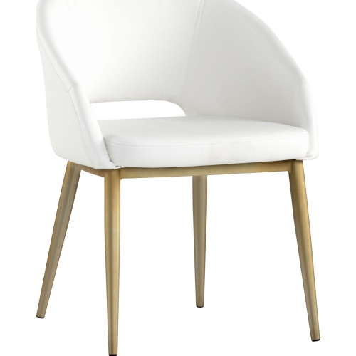 Sunpan Thatcher Dining Chair in Snow White Leatherette on Antique Brass