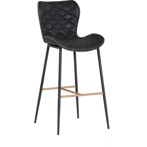 Sunpan Lyla Bar Stool in Black Leatherette on Black & Champagne (Set of 2)