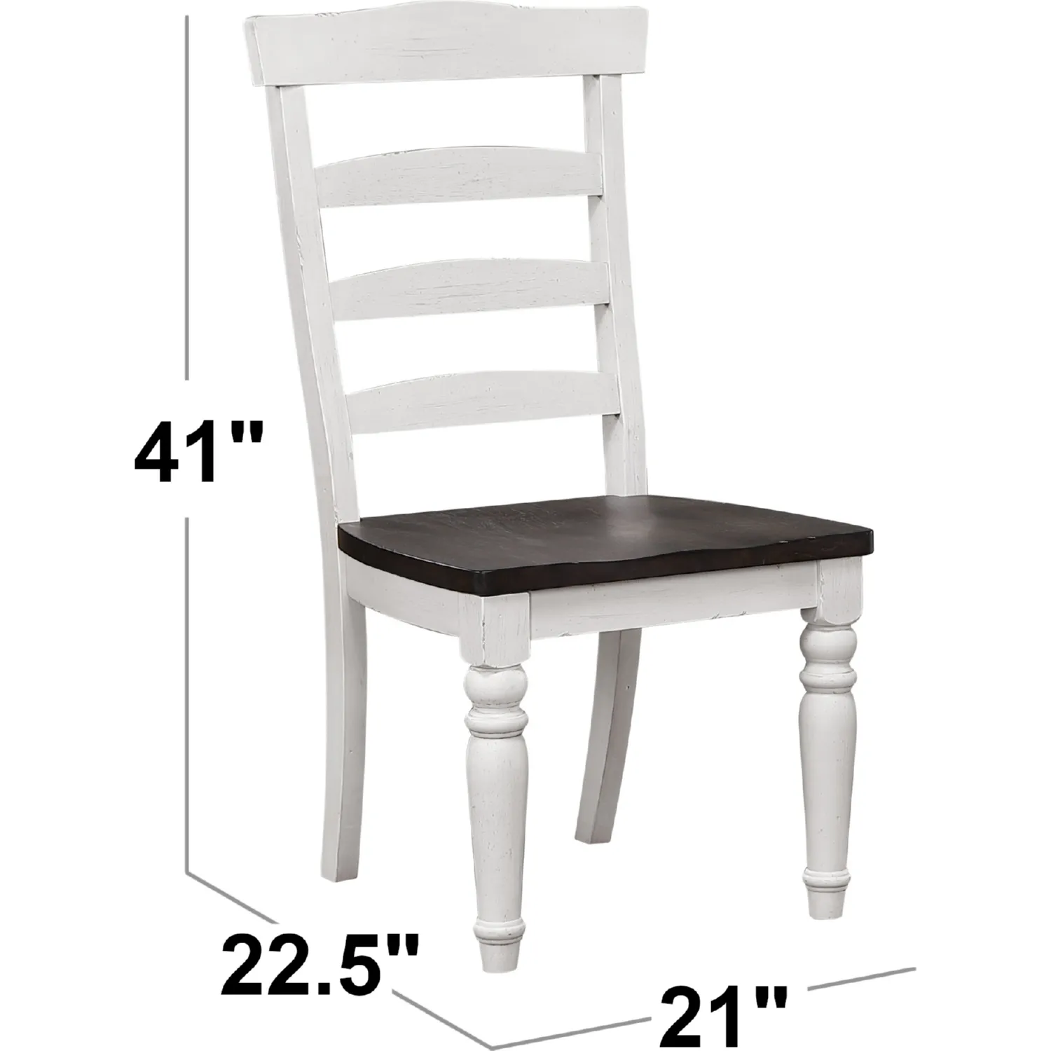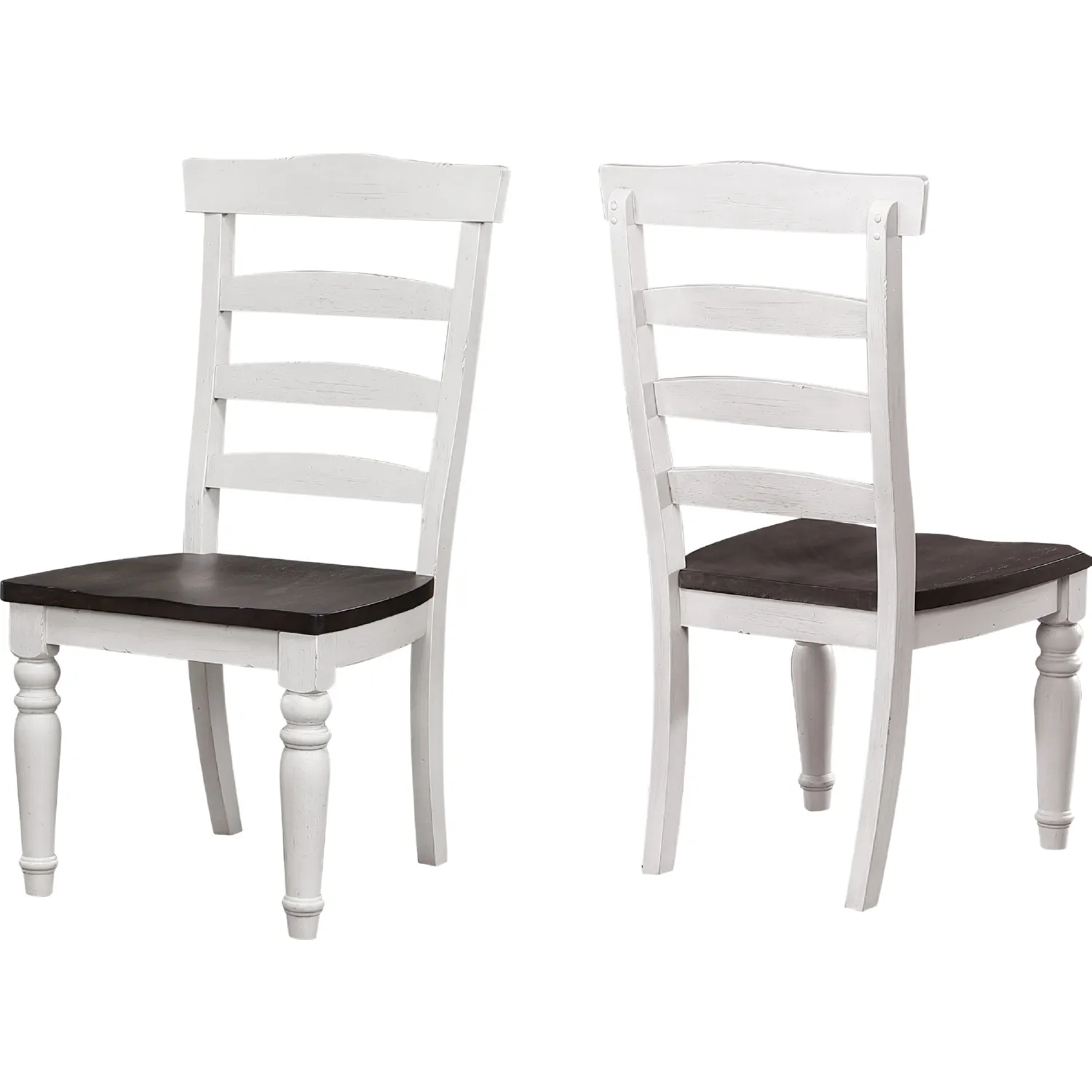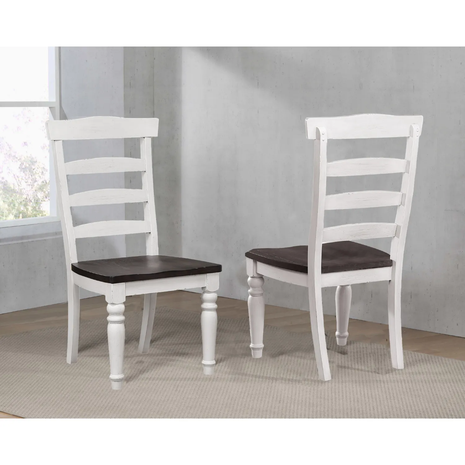 Sunset Trading French Chic Ladder Back Dining Chairs in Antique White & Walnut Brown Solid Wood (Set of 2)