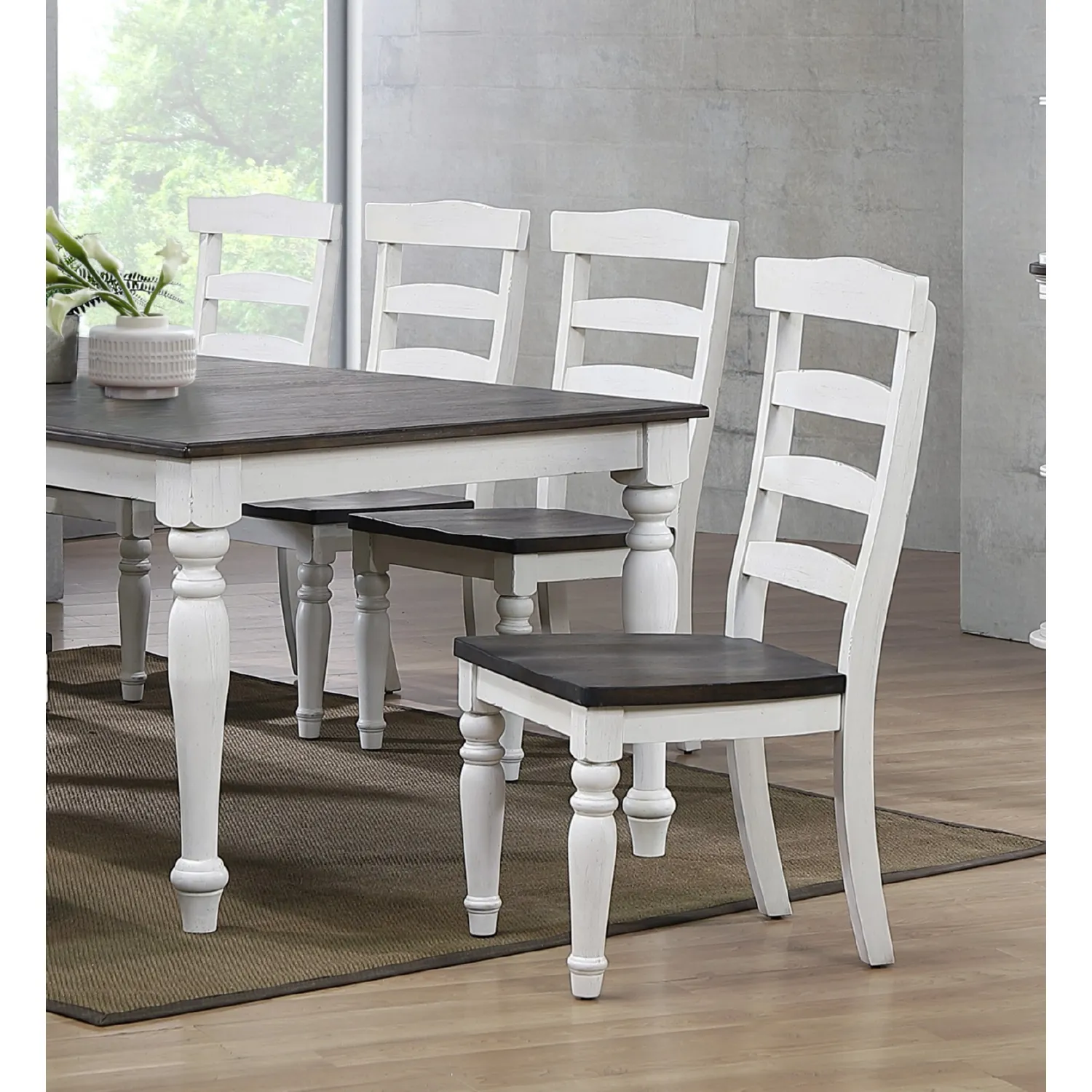Sunset Trading DLU-FC1432W-2 French Chic Ladder Back Dining Chairs Antique White Walnut Brown Solid Wood (Set of 2)