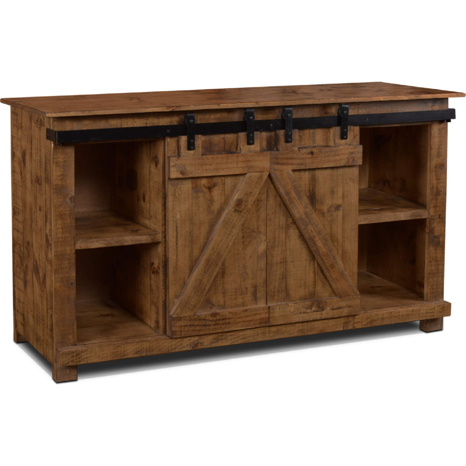 Sunset Trading Stowe Barn Door 60" TV Stand Media Cabinet in Rustic Brown Wood
