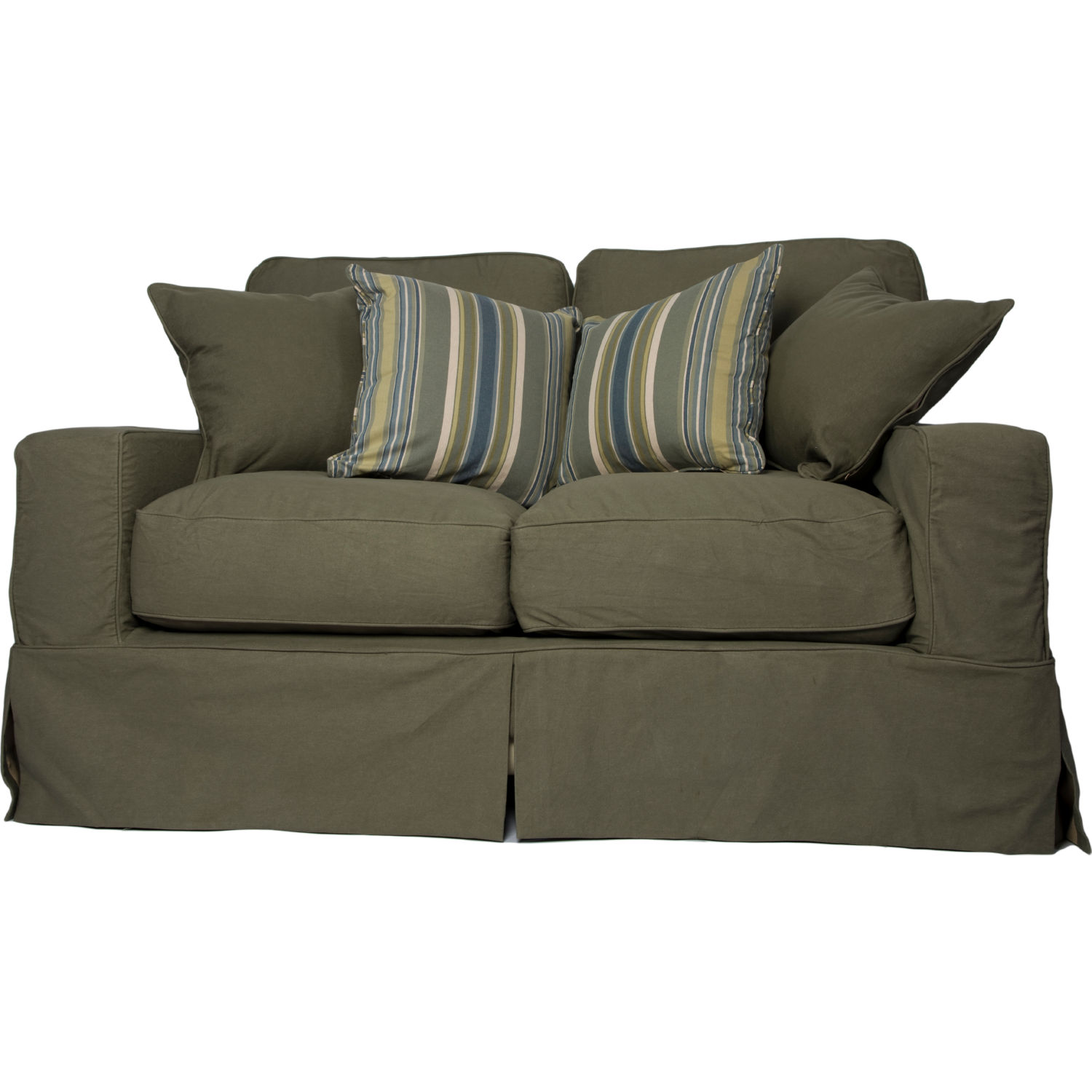 Sunset Trading Americana Box Cushion Slipcovered Loveseat in Forest Green Performance Fabric