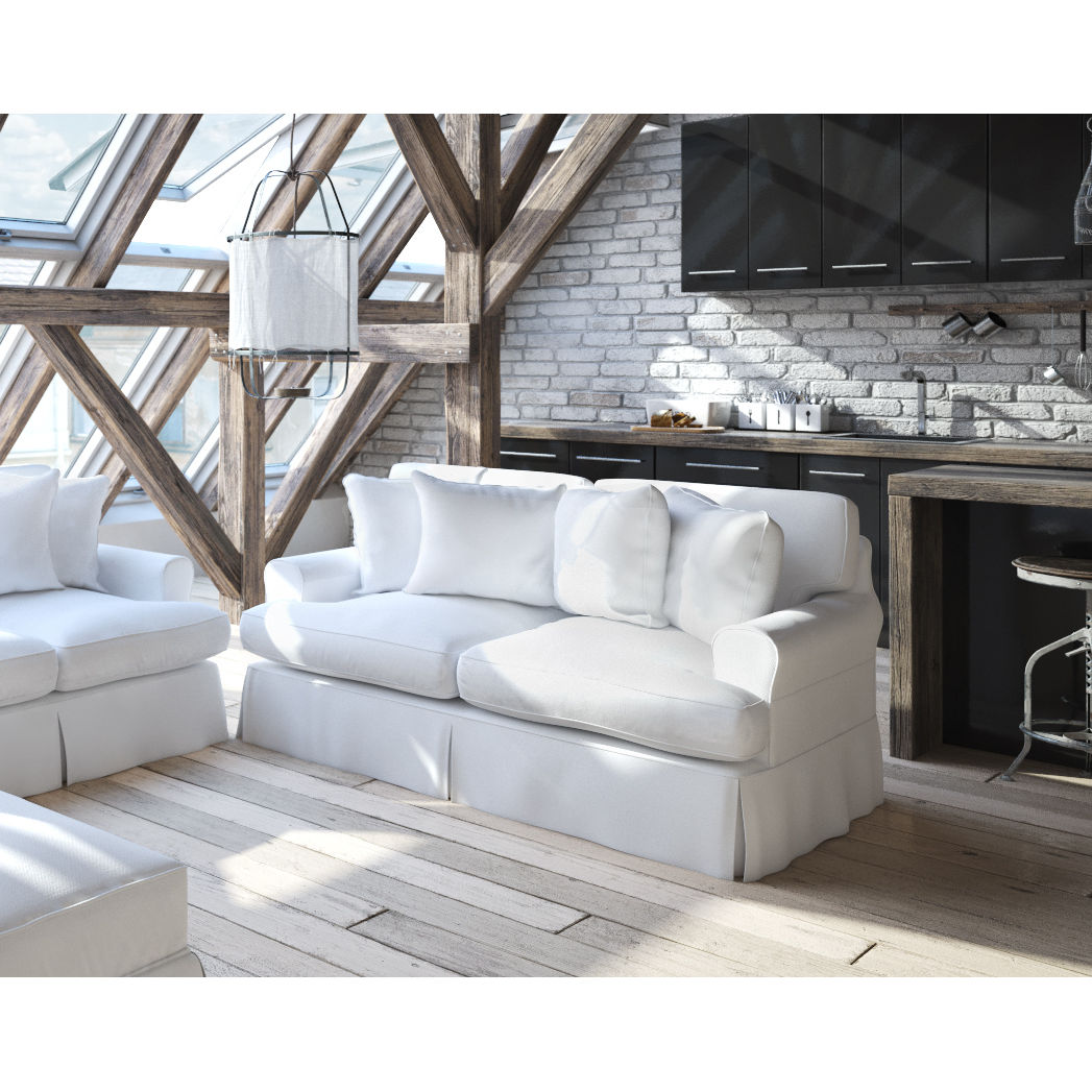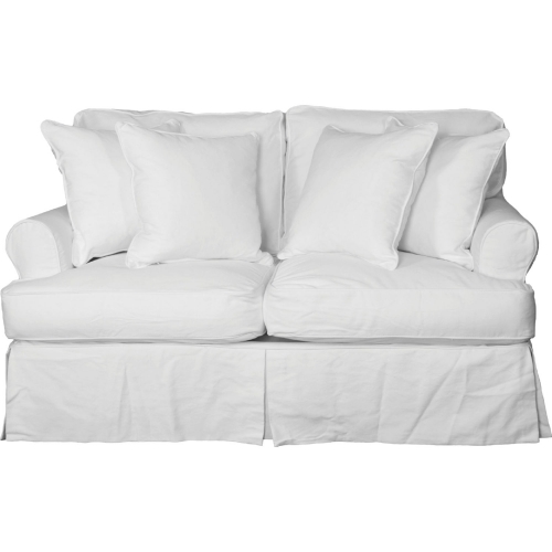 Sunset Trading Horizon T Cushion Slipcovered Loveseat in Warm White Fabric