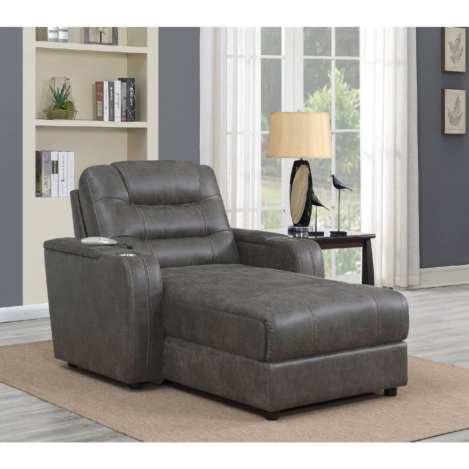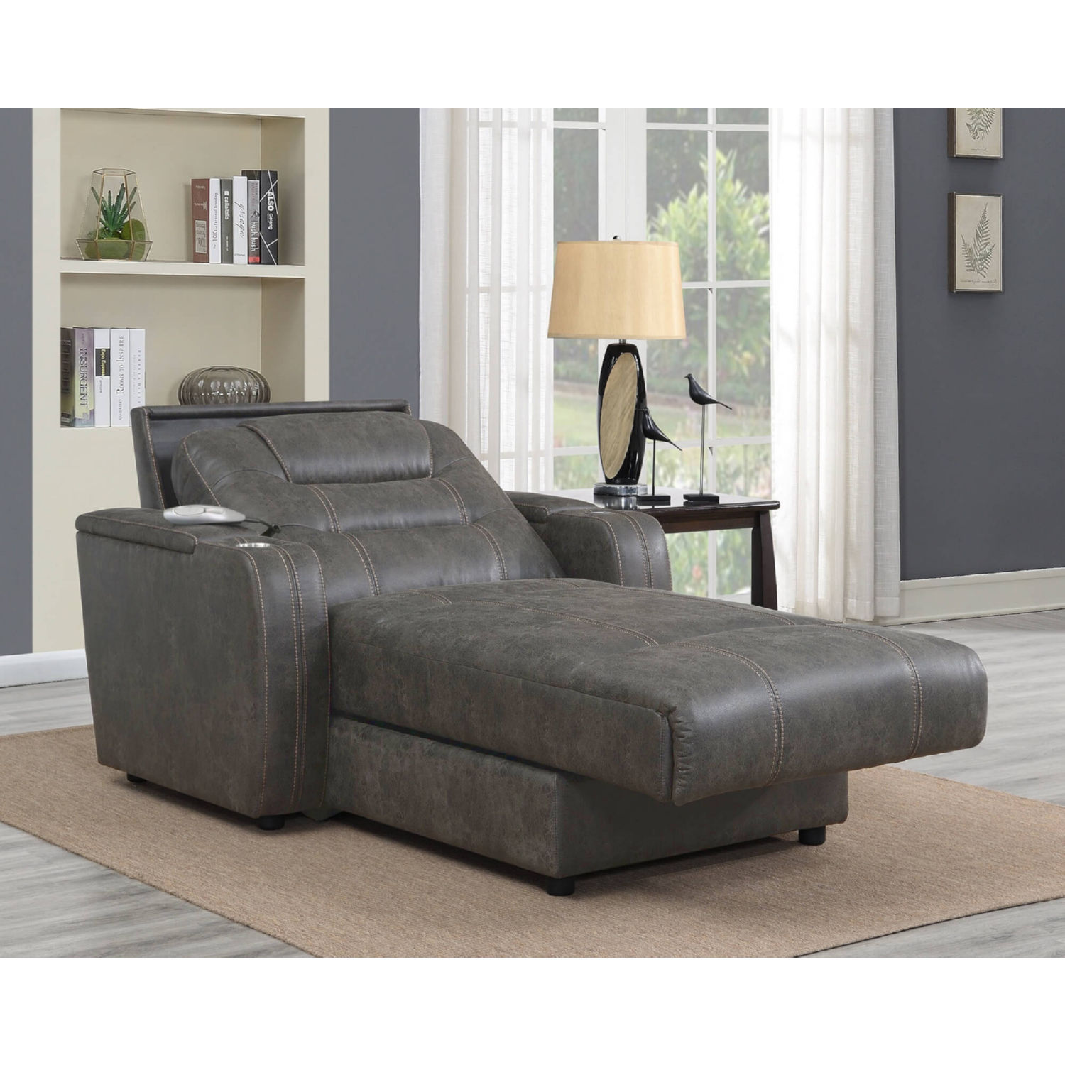 Sunset Trading SU-K1128045LS Power Reclining Chaise Lounge Chair w/ Charger Gray Fabric