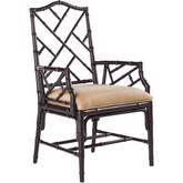 The Chippendale inspired leather wrapped bamboo in the Cilantro finish provides island style and comfort. Available as shown in the Macadamia fabric, a basketweave pattern in a golden sand color.
