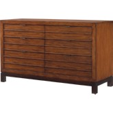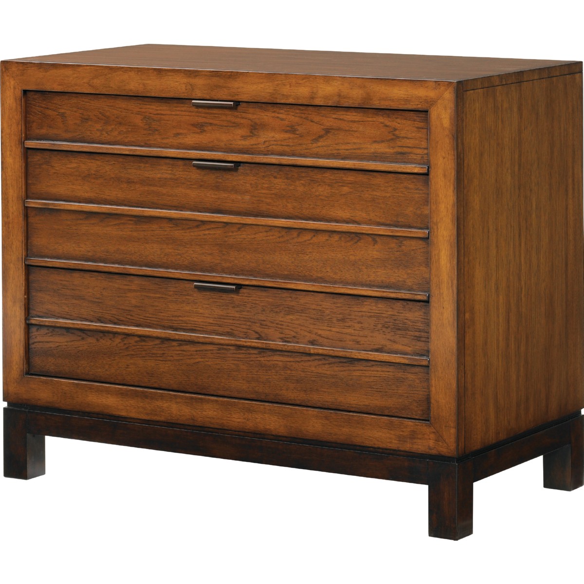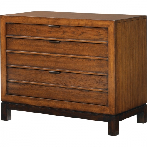 The three drawer storage provided by two depths helps keep bedside items organized, within reach, yet out of site. The balanced life comes from purposeful discipline and is fostered by the way we set up our homes. BALI finish in a sun-drenched medium sienna coloration w/ parsons leg base finished in a rich walnut to create visual depth. Drawers feature English dovetails, wood runner and drawer guides, Tommy Bahama Home drawer plaque. Hardware is custom-designed and finished in an antique bronze. No assembly required.