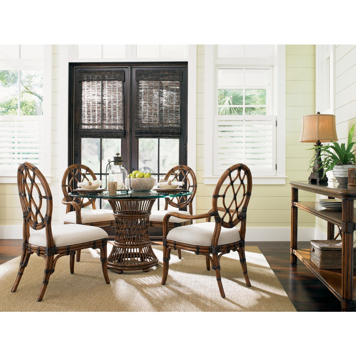 Tommy Bahama Home Aruba 36" Dining Table with Leather Wrapped Rattan Base & Glass Top