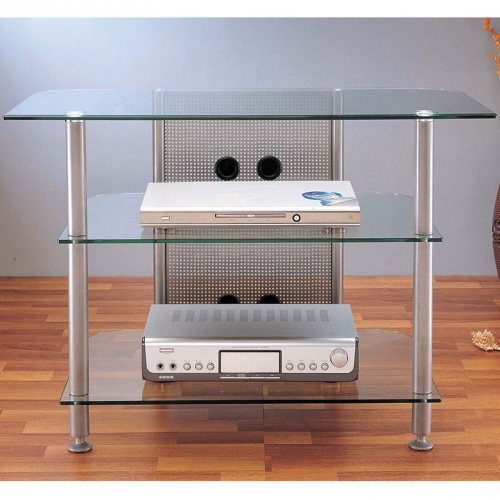 VTI AGR37S AGR Series 37" 3 Shelf TV Stand & Audio Rack Silver Tempered Glass