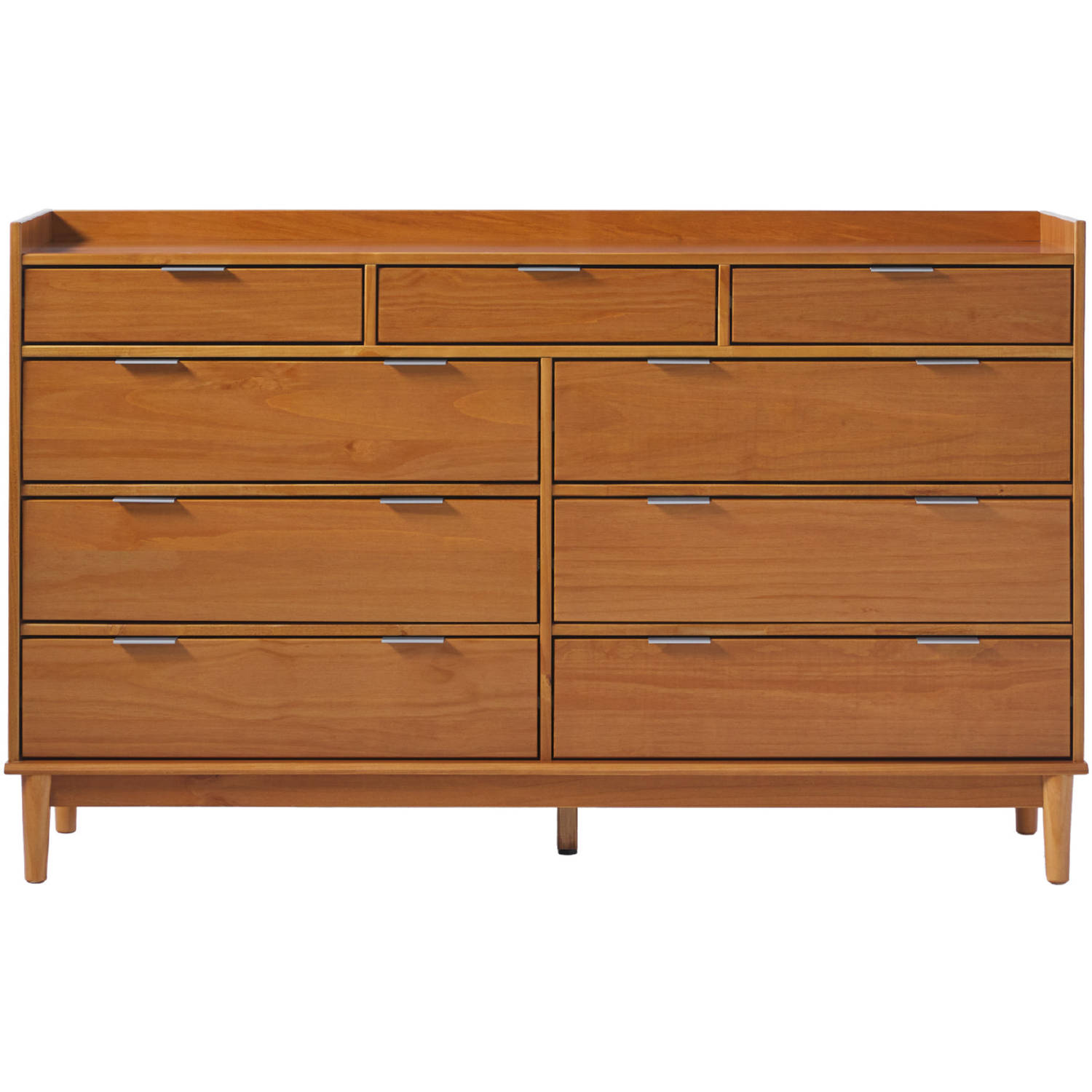 Walker Edison BR9DRLEEDRCA-T Lee 60" 9 Drawer Chest Gallery Top Caramel Finish Wood